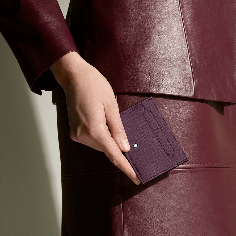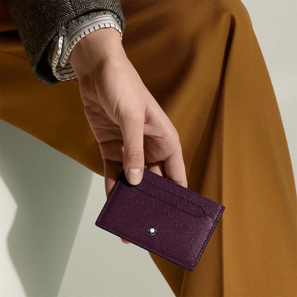 Gemaakt van luxueus Saffiano-geprint leer in cassis, voegt deze card holder een stijlvolle dimensie toe aan je dagelijkse leven. Met ruimte voor maximaal vijf creditcards, zorgt het ervoor dat je je belangrijkste benodigdheden altijd bij je hebt. Het Montblanc-embleem siert de voorkant, wat het geheel een verfijnde en elegante uitstraling geeft. Een perfect accessoire voor de moderne professional die functionaliteit en stijl wil combineren.