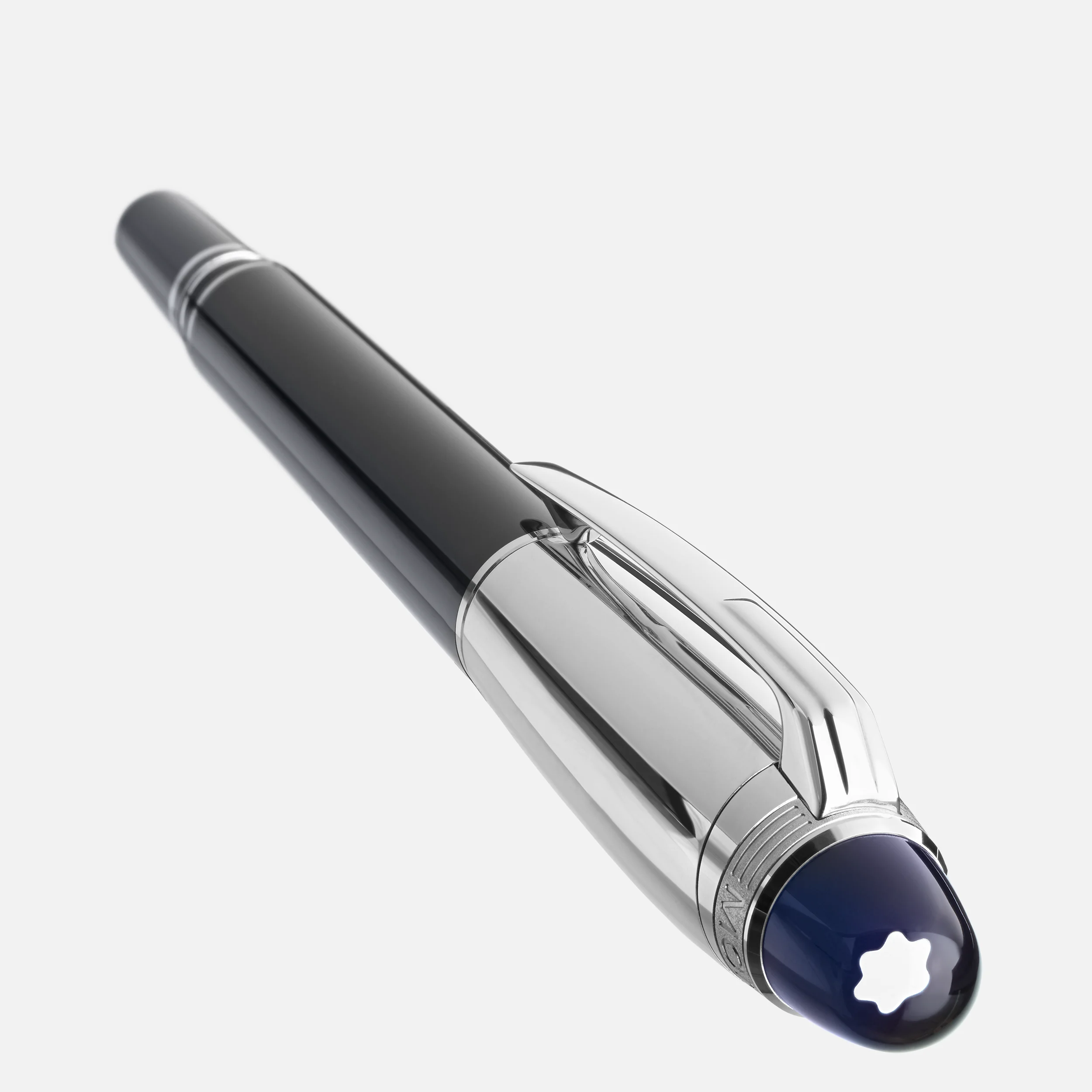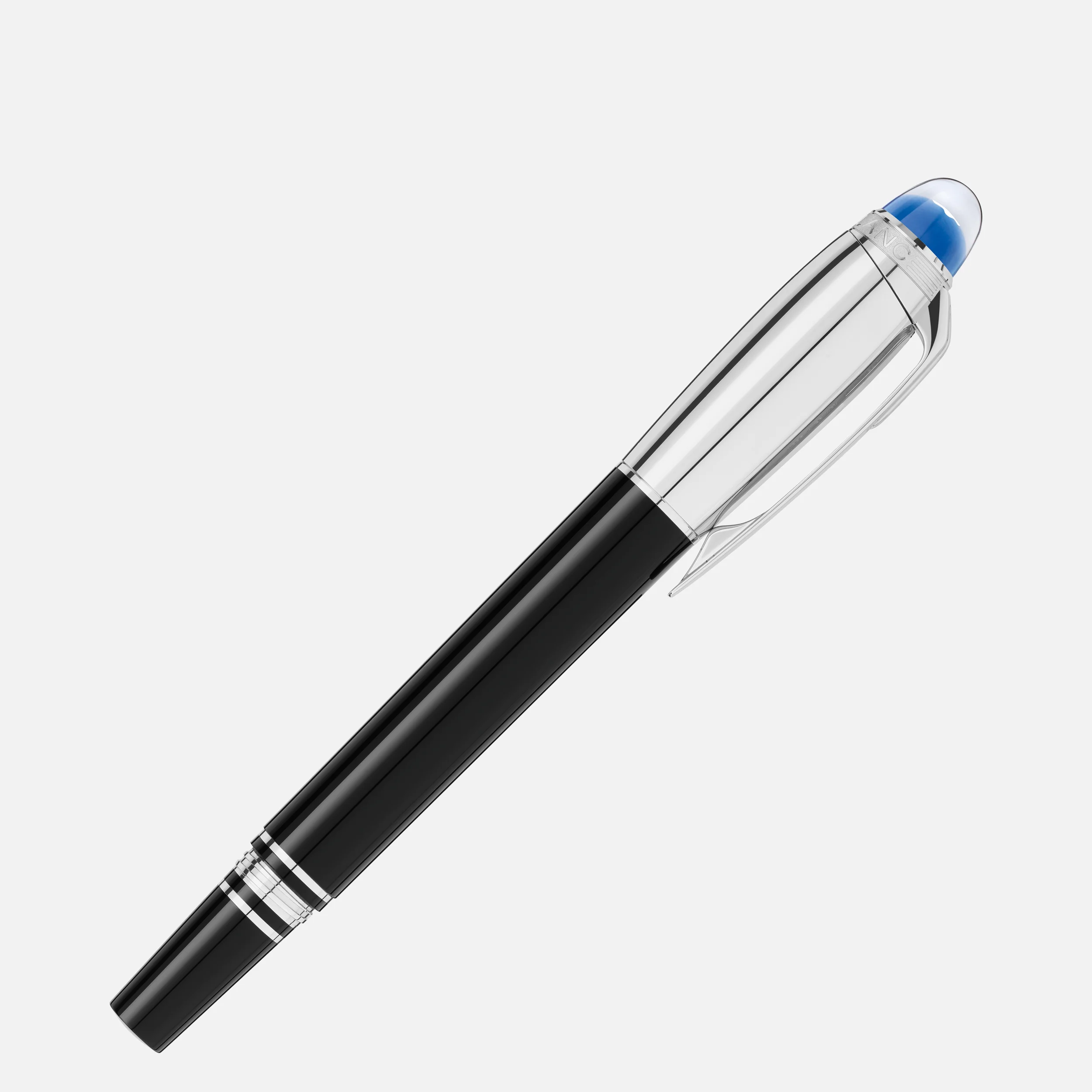 De nieuwe StarWalker draait om wandelen tussen de sterren. Het gaat over het verkennen van de kosmos en verre sterrenstelsels, over deel uitmaken van een van de meest mysterieuze en krachtige avonturen van de mensheid: ruimtereizen. Het nieuwe ontwerp van de collectie viert de immense emotie, beschreven door alle ruimtereizigers, van het zien van onze blauwe planeet zwevend in de uitgestrekte ruimte. De StarWalker-embleemtechnologie is voorzien van een blauwe, doorschijnende koepel onder het Montblanc-embleem, die doet denken aan de Aarde die boven de horizon van de maan verschijnt. De StarWalker Doué wordt geleverd met een platina-gecoate dop en fittingen en een zwarte edelharshouder. De vulpen is handgemaakt met een rhodium-gecoate Au585/14 karaat gouden penpunt.
