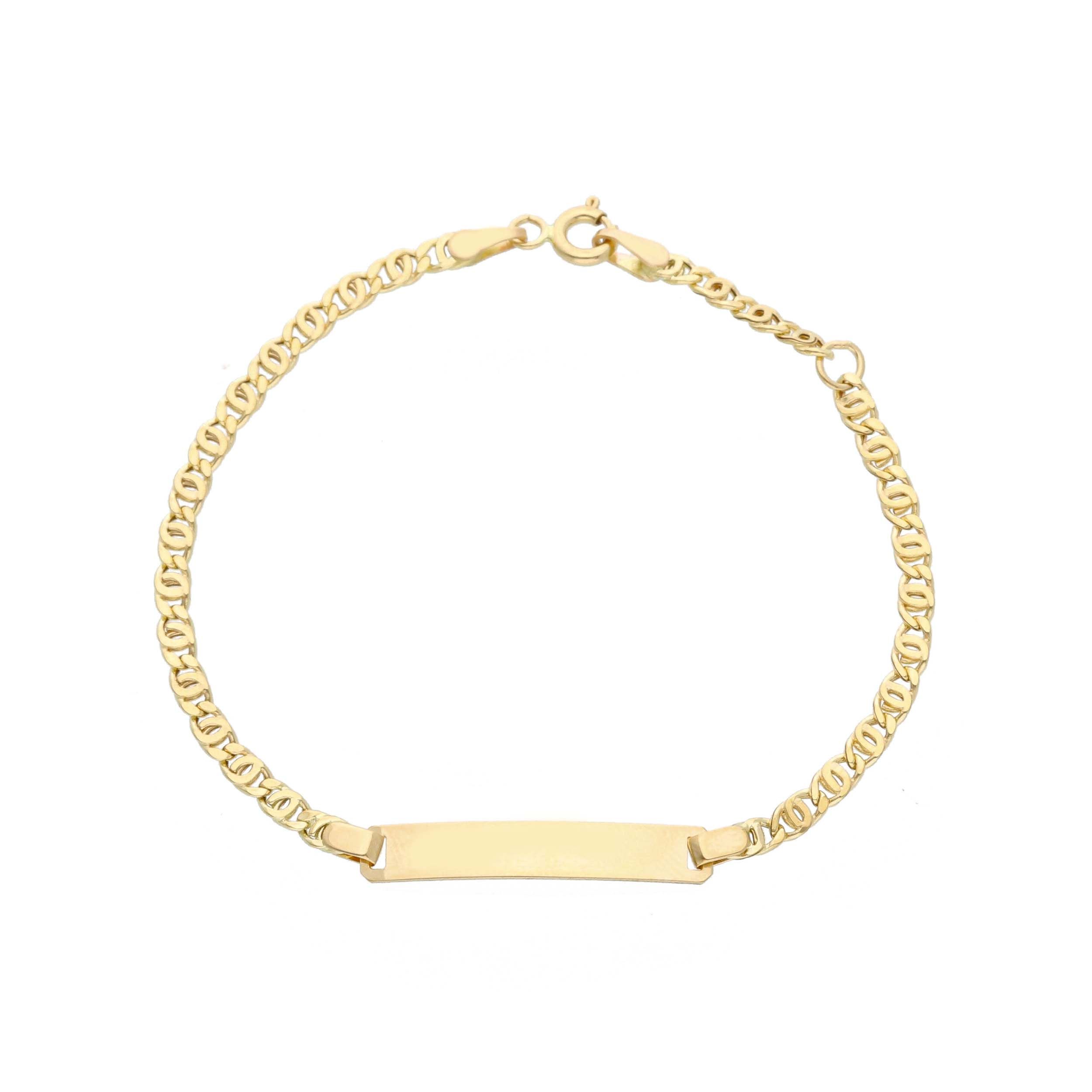 Vier het nieuwe leven met een speciaal cadeau: onze gouden baby-armbandjes met naamplaatje. Verkrijgbaar in zowel witgoud als geelgoud, stralen deze armbandjes een subtiele elegantie uit en bieden ze de mogelijkheid om een naam, geboortedatum of een persoonlijke boodschap te graveren. Dit sieraad is niet alleen een prachtige aanvulling op de babyoutfits, maar een blijvend aandenken dat met liefde zal worden bewaard. De zachte afwerking en veilige sluiting zorgen ervoor dat het armbandje altijd comfortabel en veilig blijft, zelfs voor de kleinste polsjes.