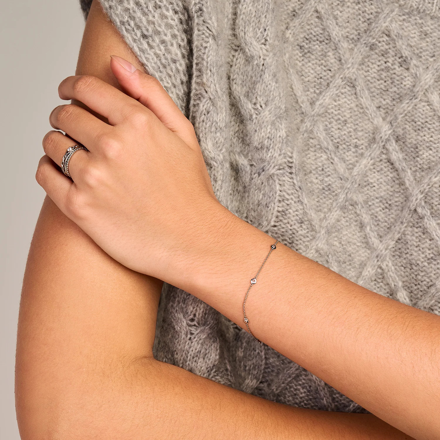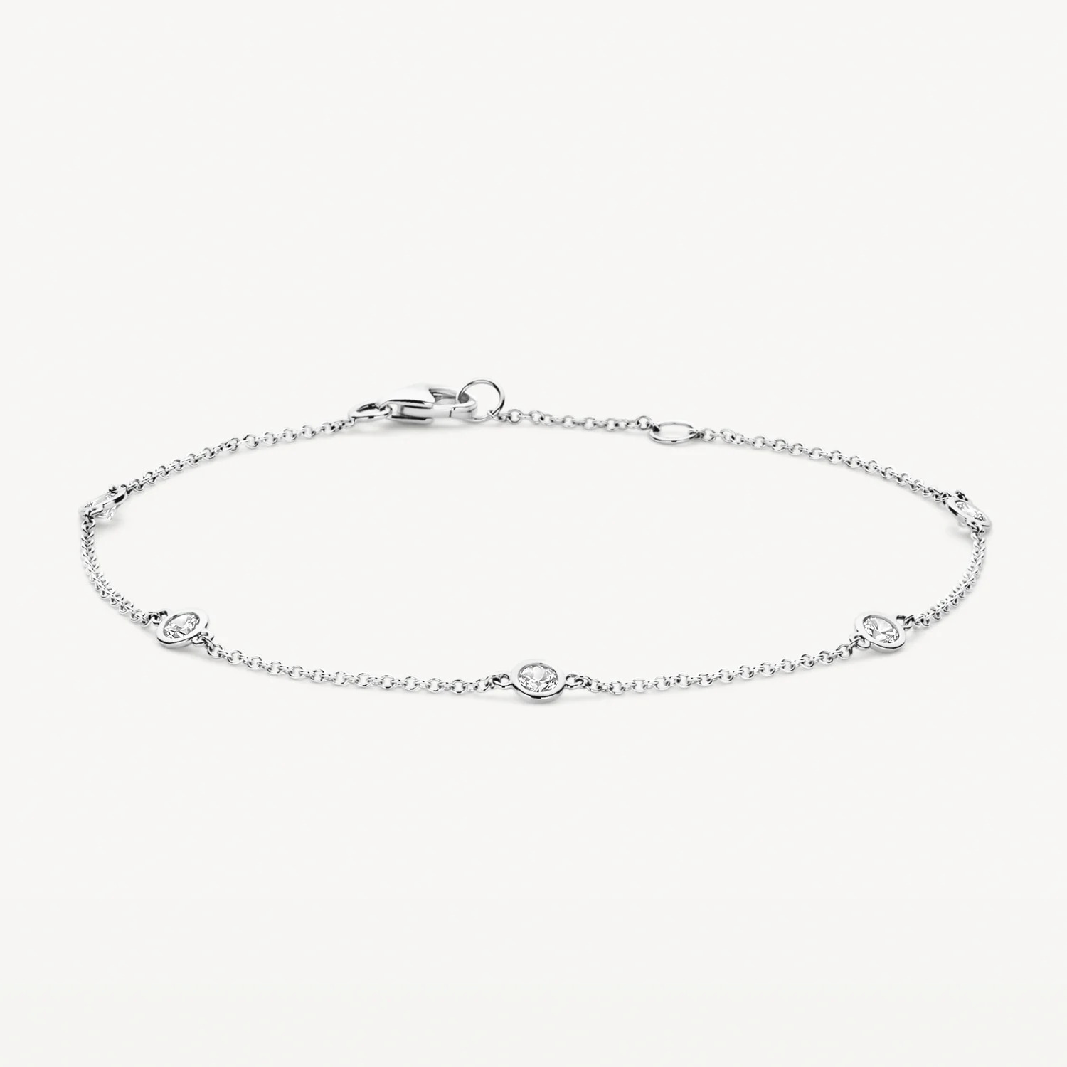 Glinsterende zirkonia in gladomzetting (3,4 mm) en 14k witgoud maken van deze armband een subtiele, stijlvolle blikvanger. De band is 18 cm lang en heeft een karabijnsluiting. Mooi op zichzelf of mix en match met andere armbanden uit onze collectie.