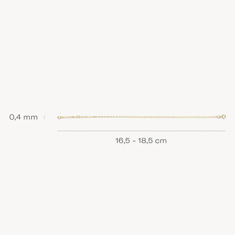 De Blush schakelarmband in 14 karaat goud is een stijlvolle klassieker die elegantie en veelzijdigheid perfect combineert. Dankzij het verfijnde schakeldesign straalt deze armband tijdloze klasse uit en vormt hij een prachtige basis voor elke sieradencollectie.