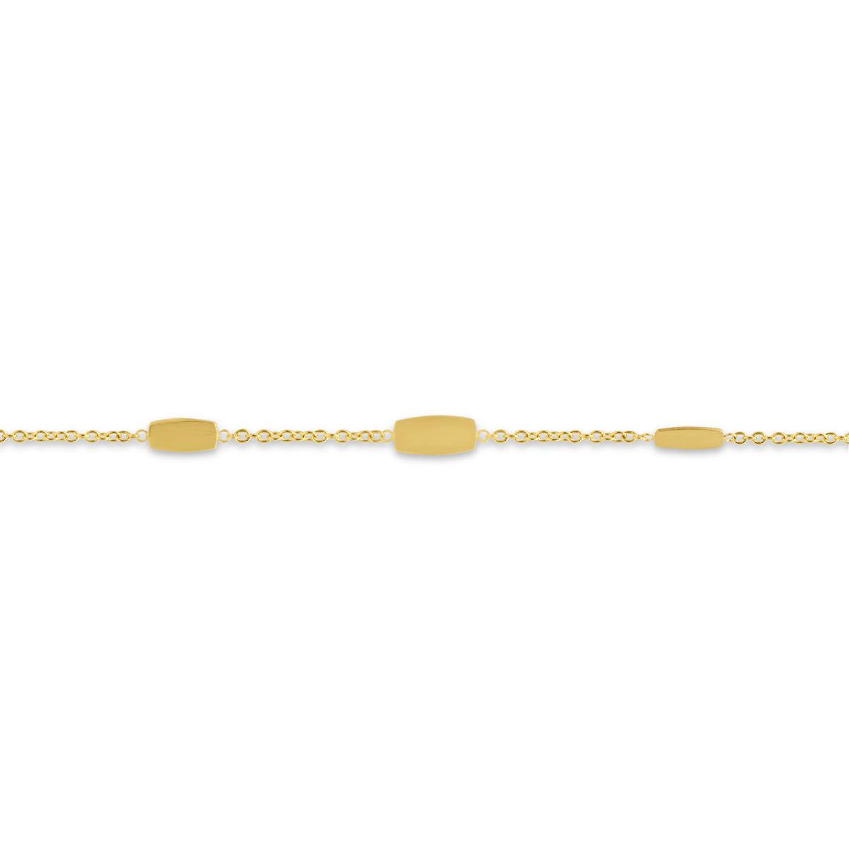 Deze armband in 18kt geelgoud met plaatjes is een elegant en tijdloos juweel met een moderne, verfijnde uitstraling. Het warme 18 karaat geelgoud geeft de armband zijn luxueuze karakter, terwijl de fijne plaatjes zorgen voor een speels en stijlvol accent. Samen vormen ze een harmonieus ontwerp dat subtiel opvalt en moeiteloos combineert met zowel casual als meer geklede outfits.