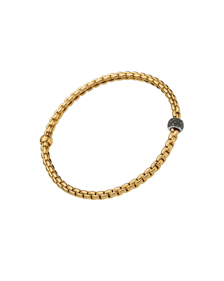 De Eka Tiny armband in geelgoud met zwarte briljanten (0.20 ct) is een verfijnde en unieke toevoeging aan elke sieradencollectie. Het stralende goud biedt een prachtig contrast met de mysterieuze, diepe glans van de zwarte briljanten, wat deze armband een eigentijds en elegant karakter geeft. De subtiele schittering van de zwarte briljanten voegt een vleugje verfijning toe, ideaal voor wie houdt van een sieraad dat opvalt door zijn minimalistische, maar krachtige uitstraling. Perfect om alleen te dragen of in combinatie met andere sieraden voor een gelaagde, moderne look, is deze armband geschikt voor zowel dagelijks gebruik als bijzondere gelegenheden.