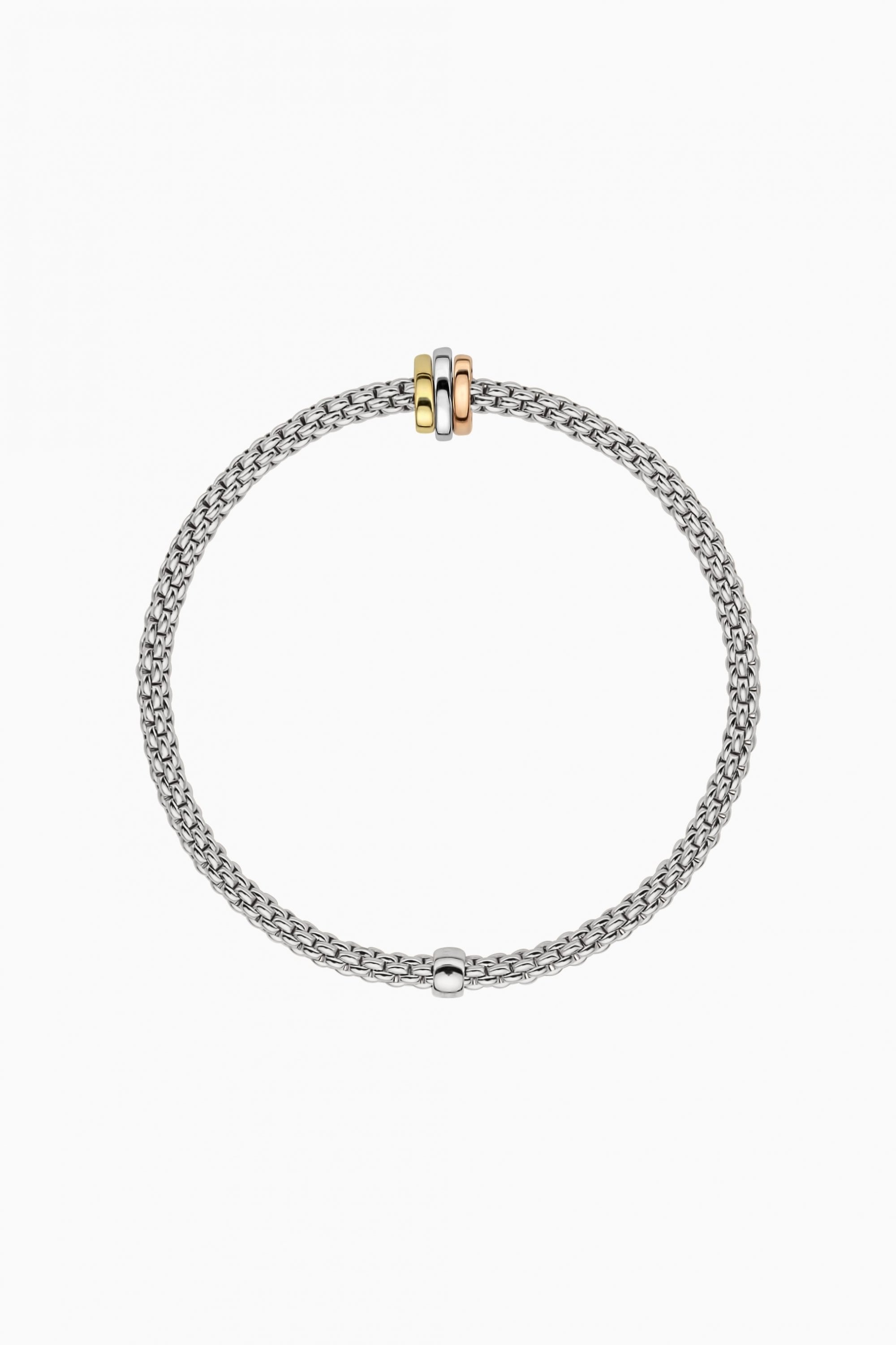 Flexibele constructie zonder sluiting: De armband is volledig elastisch dankzij FOPE’s gepatenteerde Flex’it-technologie – eenvoudig over de hand te rollen en past zich comfortabel aan de pols aan.