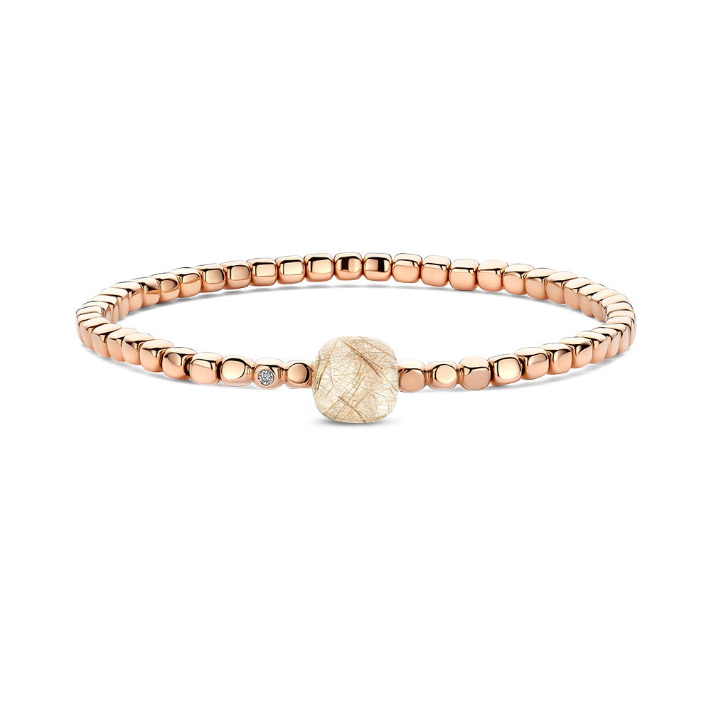 Ervaar de verfijnde schoonheid van de Mini Sweety Stretch Bracelet, uitgevoerd met rutielkwarts en witte parelmoer. Deze unieke armband, met referentie 26AS03Rrutmpbi_16, combineert de gouden schittering van rutielkwarts met de tijdloze elegantie van witte parelmoer. Het resultaat is een speelse en toch klassieke accessoire die elke outfit net dat beetje extra geeft.