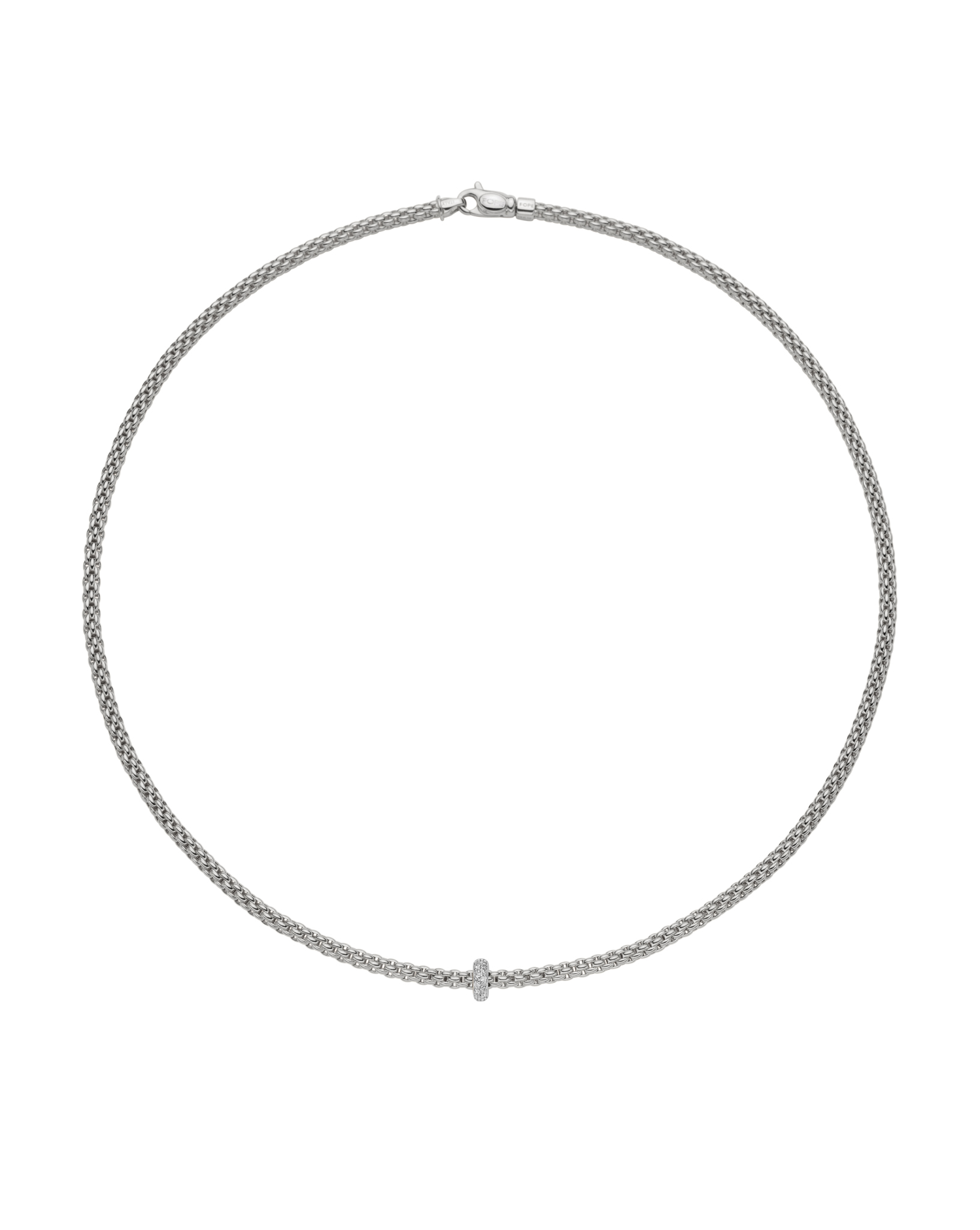 Dit is een elegante halsketting met een gevlochten structuur in roségoud, wat een warme en verfijnde uitstraling geeft. De subtiele toevoeging van een witgouden of met diamant bezette detail zorgt voor een luxueus accent. Het ontwerp oogt tijdloos en stijlvol, perfect om solo te dragen of te combineren met andere sieraden voor een gelaagd effect. Een prachtige keuze voor liefhebbers van fijne, doch opvallende sieraden!