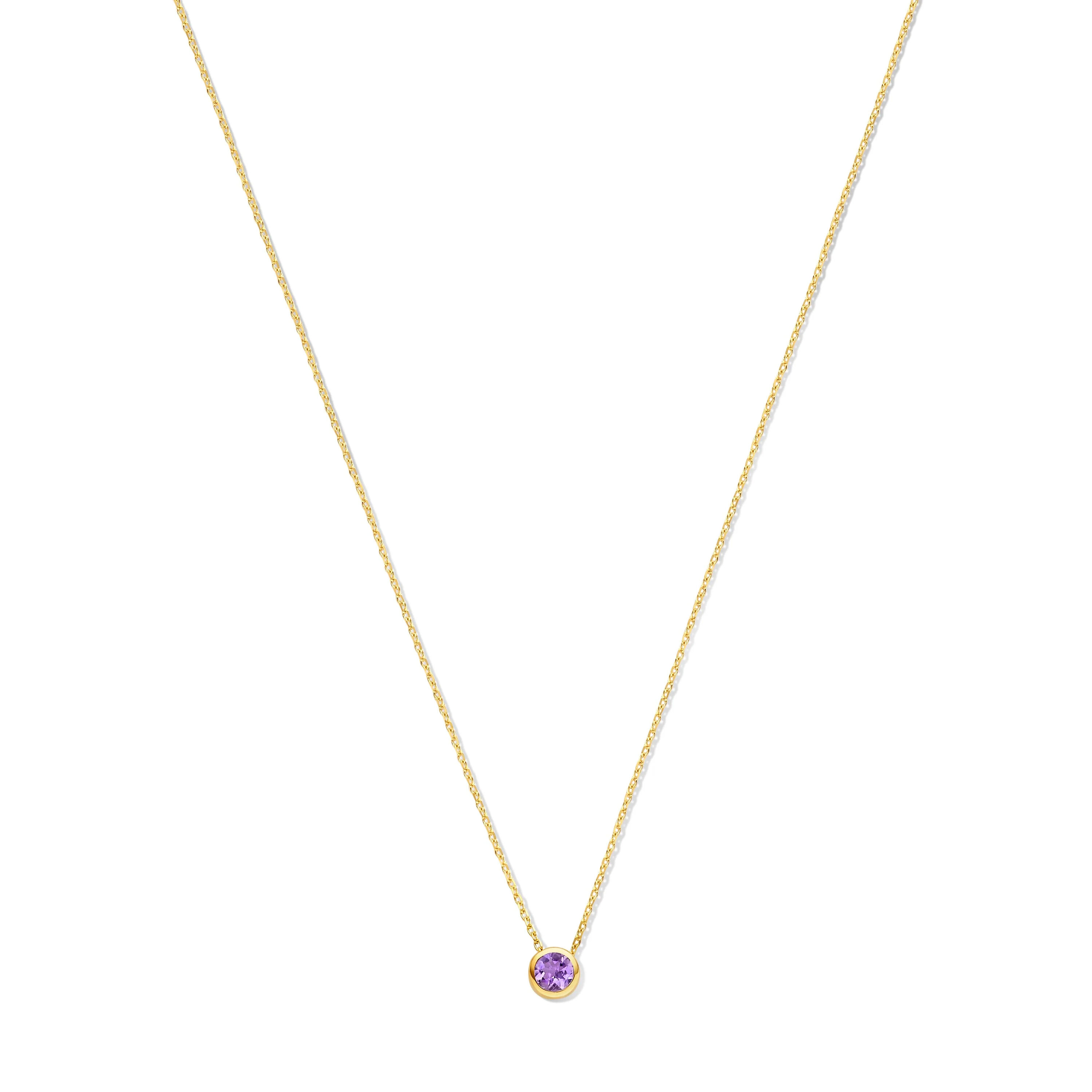 Voor iedereen die jarig is in februari, is onze schitterende 14 karaat gouden collier met een echte amethyst de perfecte keuze. Deze prachtige paarse edelsteen symboliseert wijsheid en spiritualiteit, en biedt je diepere inzichten in wat echt belangrijk voor je is, waardoor je persoonlijke groei stimuleert. Steengrootte: 5mm Onze edelstenen zijn unieke natuurlijke creaties, waarbij kleurafwijkingen kunnen optreden, wat elke steen zijn eigen karakter en charme geeft.