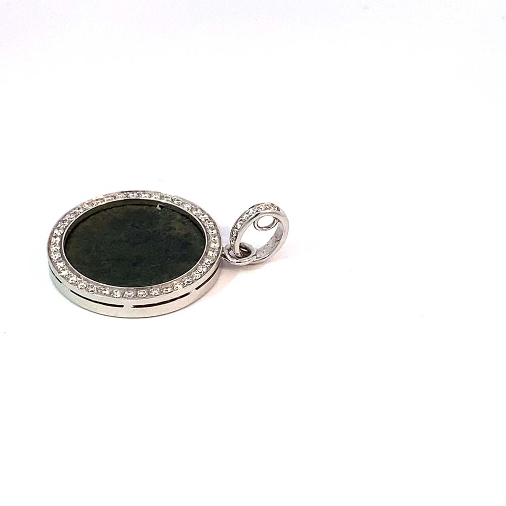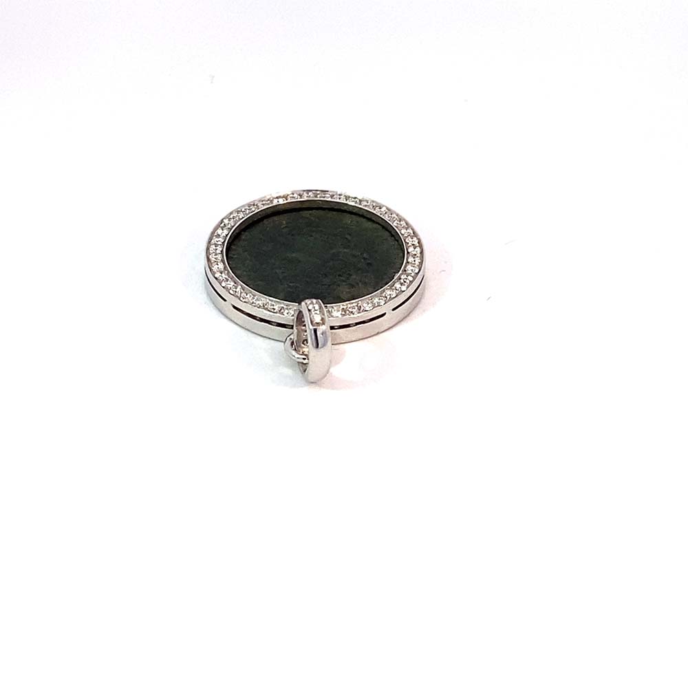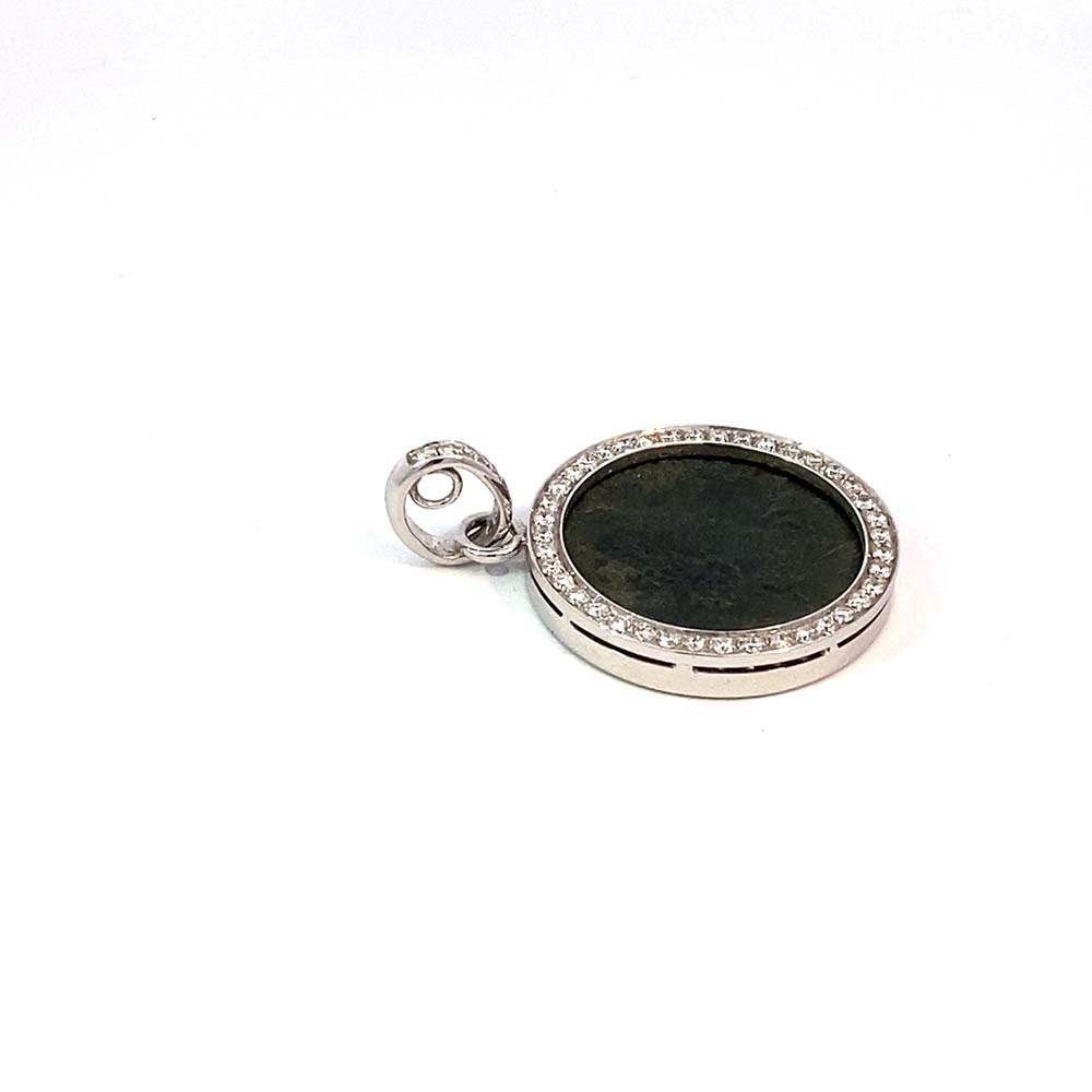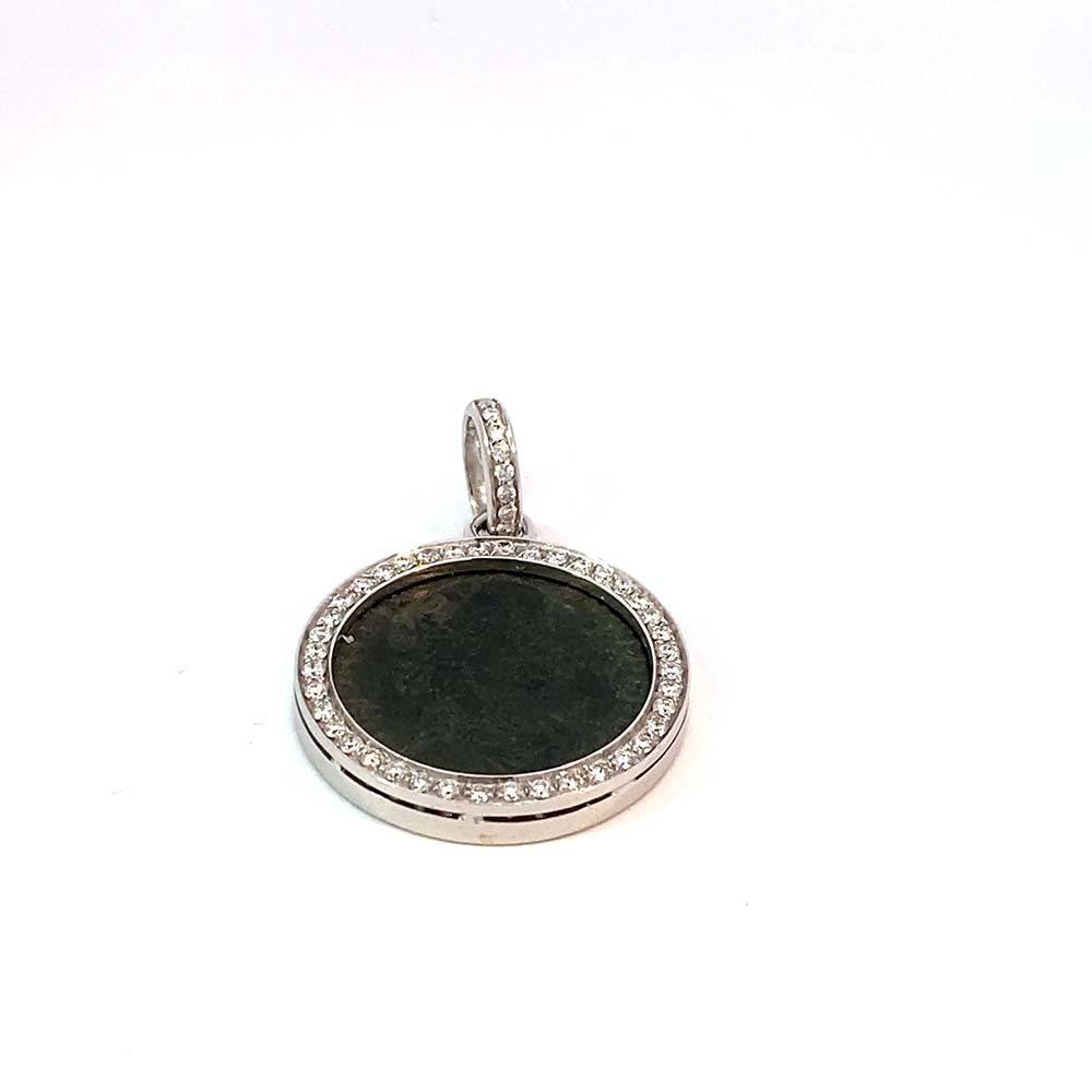 Deze unieke hanger, vervaardigd uit 18kt witgoud, is een opvallend en stijlvol sieraad. Het ontwerp is voorzien van een elegante munt, wat de hanger een bijzondere en persoonlijke touch geeft. Het koele, glanzende witgoud zorgt voor een moderne en verfijnde uitstraling, waardoor de hanger zowel veelzijdig als luxueus is. Deze hanger kan perfect gedragen worden als statement stuk of als aanvulling op andere sieraden en is een prachtige manier om een persoonlijke betekenis of een bijzondere herinnering stijlvol te vereeuwigen.