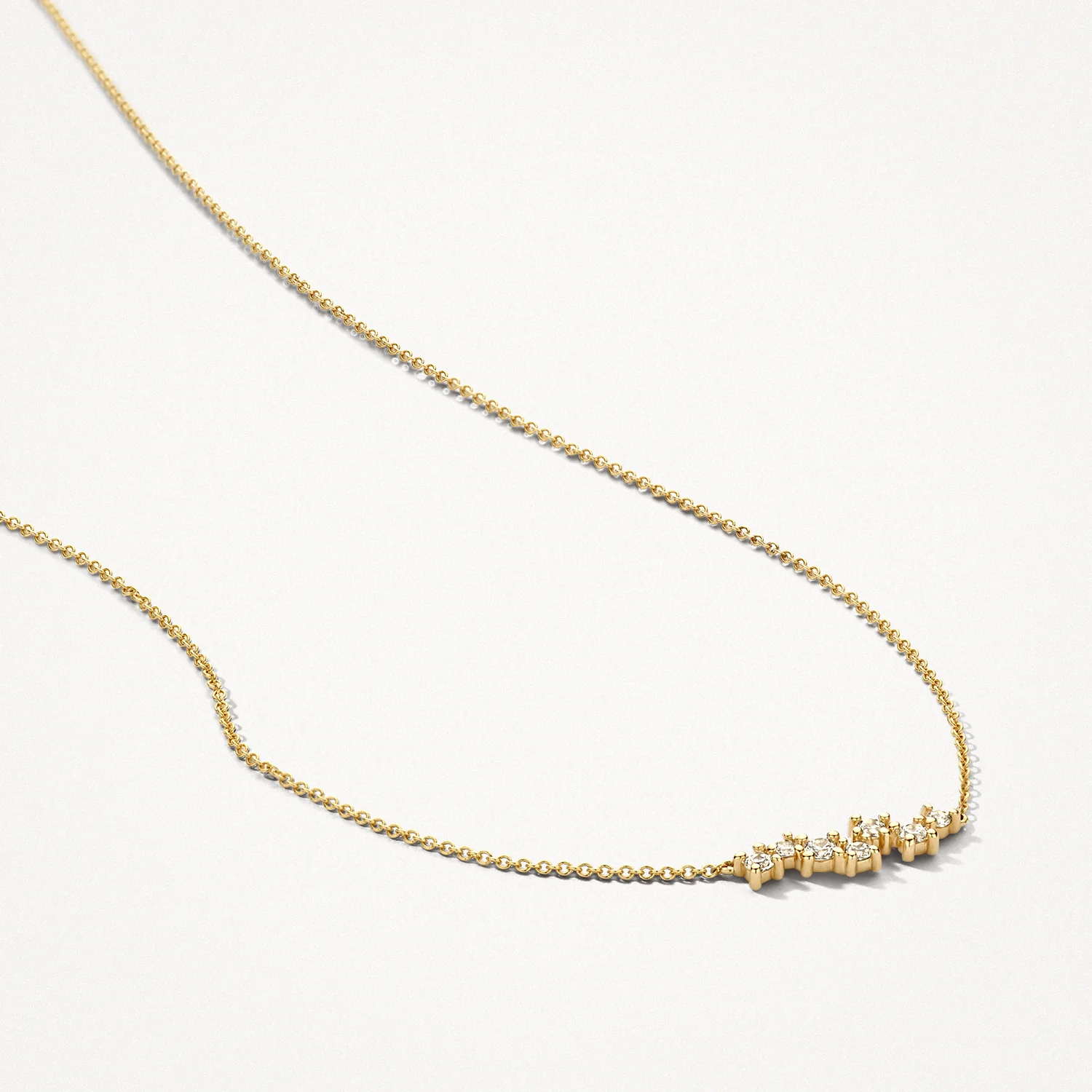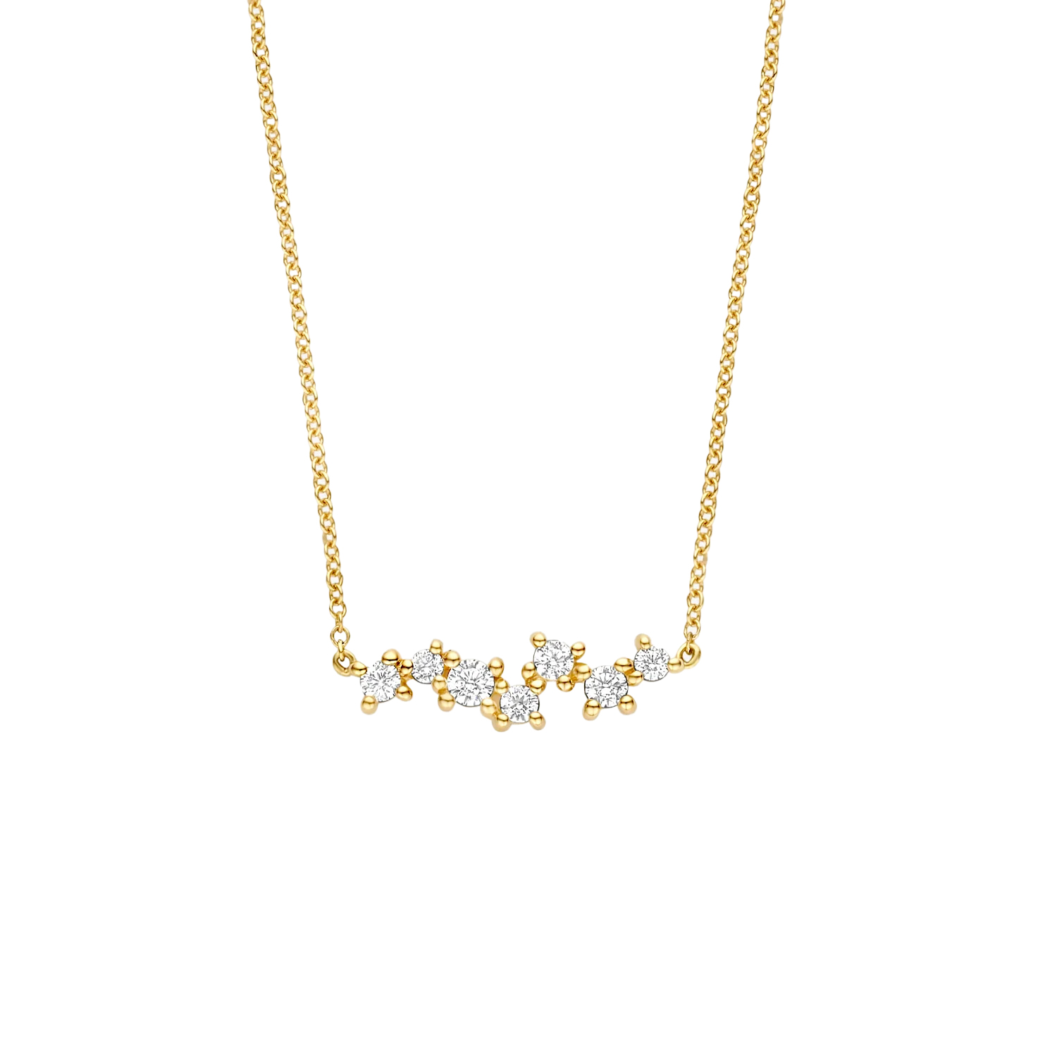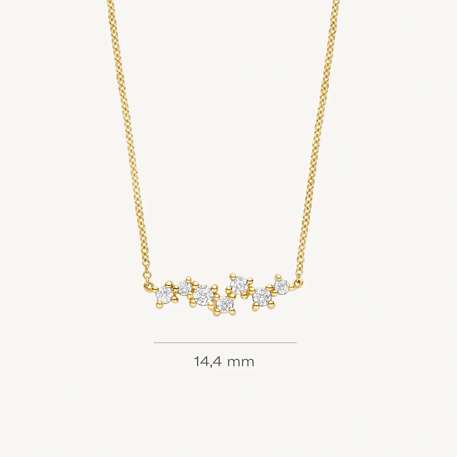 Deze Blush ketting van 14 karaat geelgoud is het toonbeeld van verfijnde elegantie. In het midden schittert een heldere zirkonia, subtiel gezet voor een sprankelend accent dat het licht prachtig vangt. De fijne schakels geven de ketting een luchtige uitstraling, waardoor zij perfect past bij zowel een minimalistische als een gelaagde sieradenstijl.