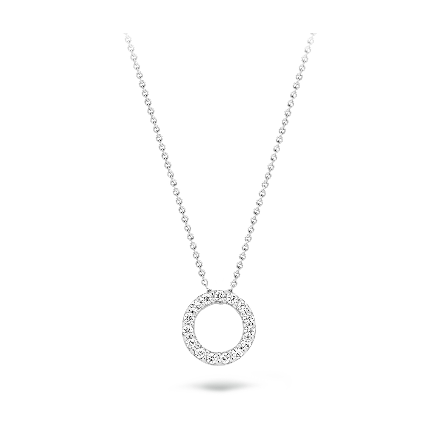Dit sprankelende collier van 14k witgoud heeft een ronde hanger met zirkonia’s. Door de bevestiging ligt de hanger met een doorsnede van 7,3 mm altijd plat op de hals. Het collier heeft een lengte van 42 cm en is mooi alleen te dragen of in combinatie met andere sieraden uit onze collectie.