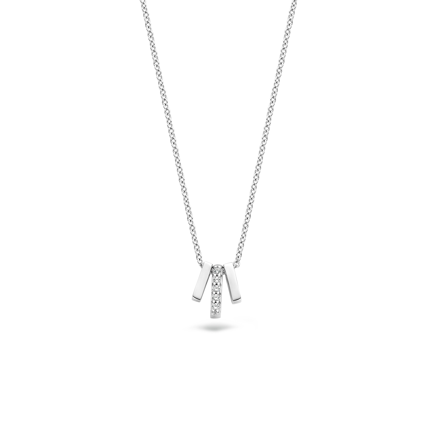 De 3 losse hangertjes geven dit 14k witgouden collier een speelse uitstraling. Het middelste hangertje straalt met 5 zirkonia’s in pavé zetting. Het collier kan heel stijlvol op zichzelf worden gedragen of in combinatie met ander sieraden uit onze collectie.