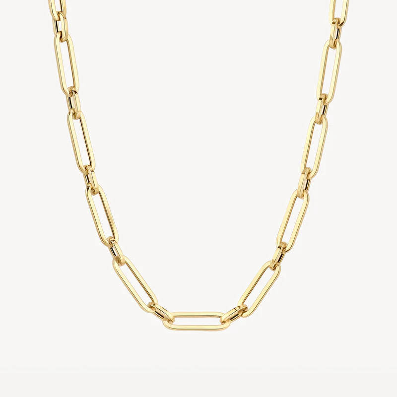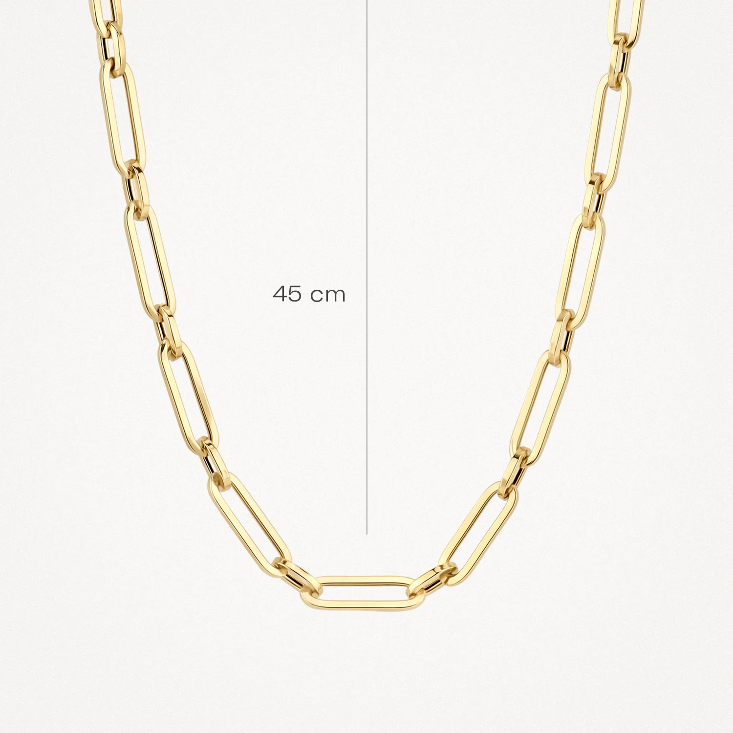 Dit elegante collier is gemaakt van 14k geelgoud en heeft een lengte van 45 cm. Een grotere en een kleinere schakel wisselen elkaar of voor een speels resultaat. Samen met armband 2189YGO/2190YGO en oorbellen 7275YGO/7276YGO vormt dit collier een prachtige set.