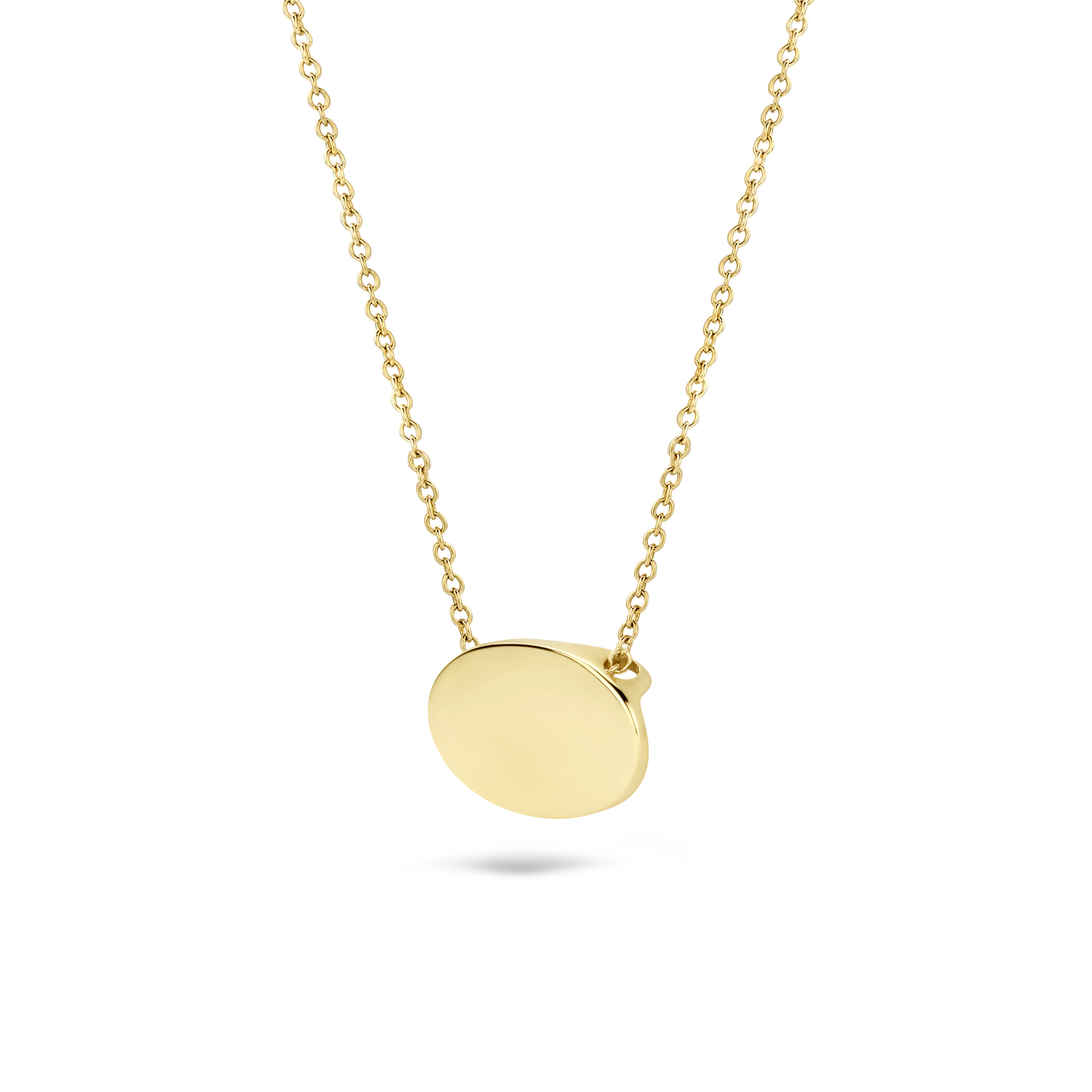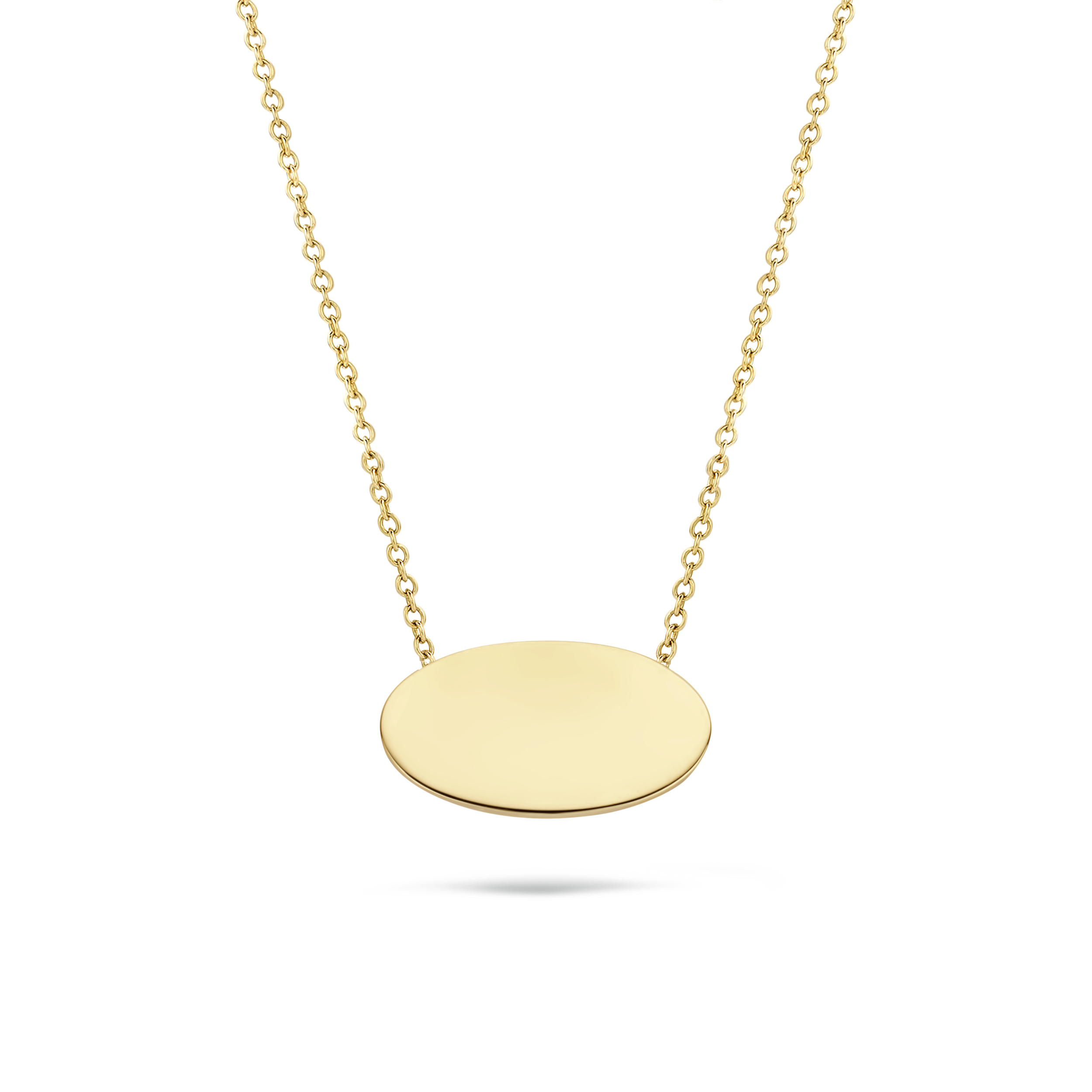 De ovalen hanger aan dit collier van 14k geelgoud kan worden gegraveerd met bijvoorbeeld een naam. Dat maakt dit stijlvolle sieraad een prachtig cadeau voor een bijzondere gelegenheid. De doorsnede van de hanger is 0,9 mm en de lengte van het collier is 42 cm.