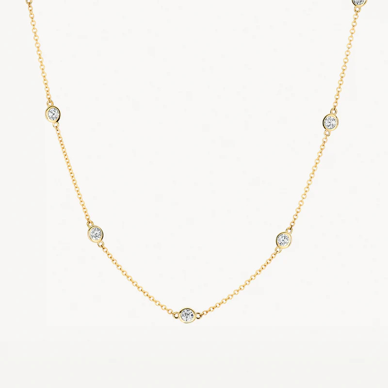 Glinsterende zirkonia in gladomzetting (3,4 mm) en 14k geelgoud maken van dit collier een geraffineerde eyecatcher. Mooi op zichzelf of mix en match met andere sieraden uit onze collectie, bijvoorbeeld met armband 2237YZI.