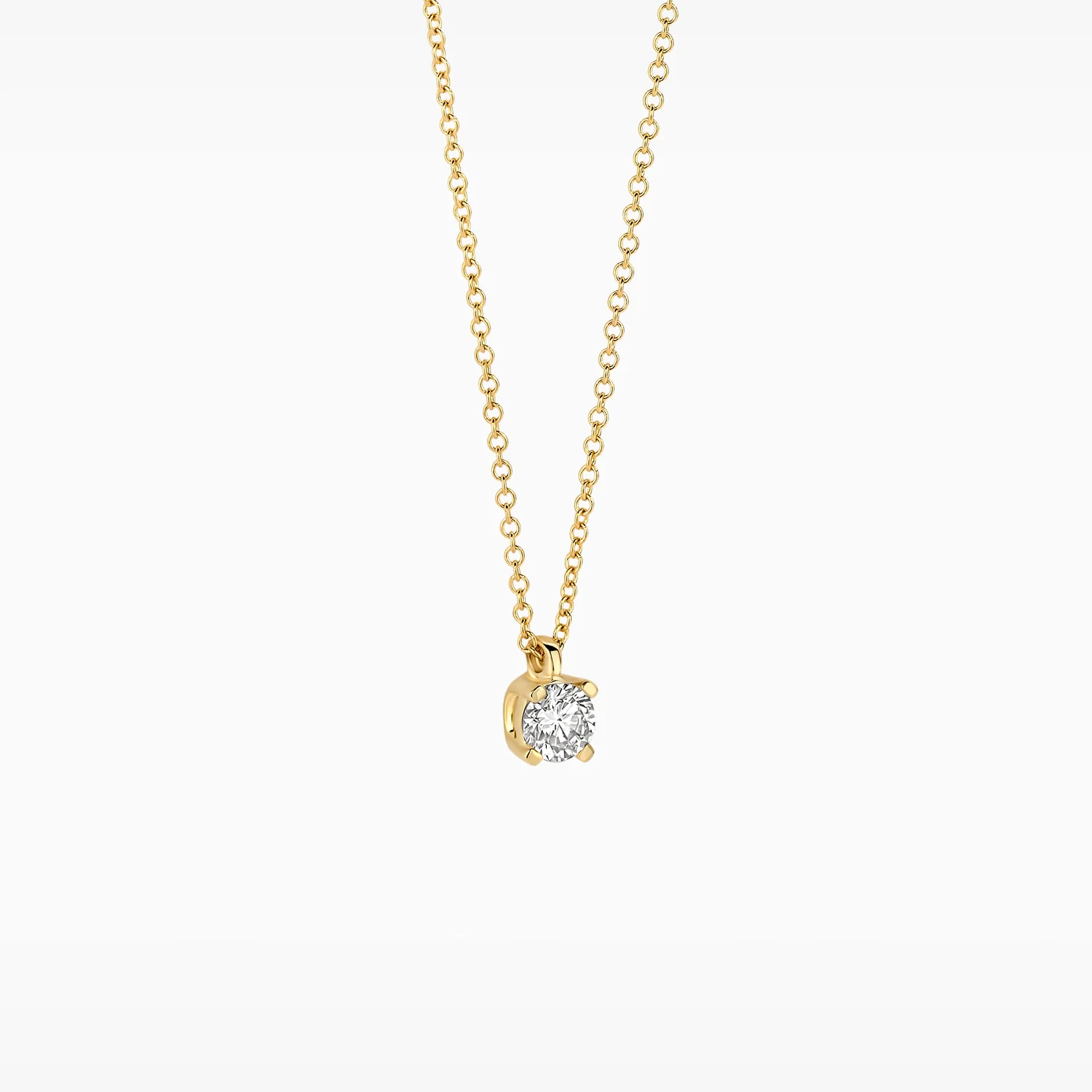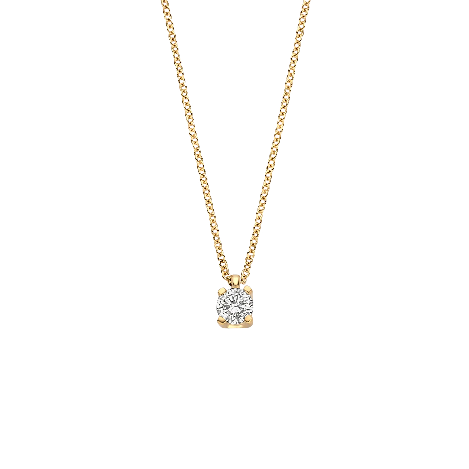 Dit schitterende collier van 14kt goud straalt verfijning uit met een diamant van 0,15 karaat, gezet in een elegante gele hanger. De ketting, met een lengte van 42 cm, is perfect om alleen te dragen als subtiele blikvanger of in combinatie met andere sieraden uit onze collectie. Een prachtig stuk voor elke gelegenheid.