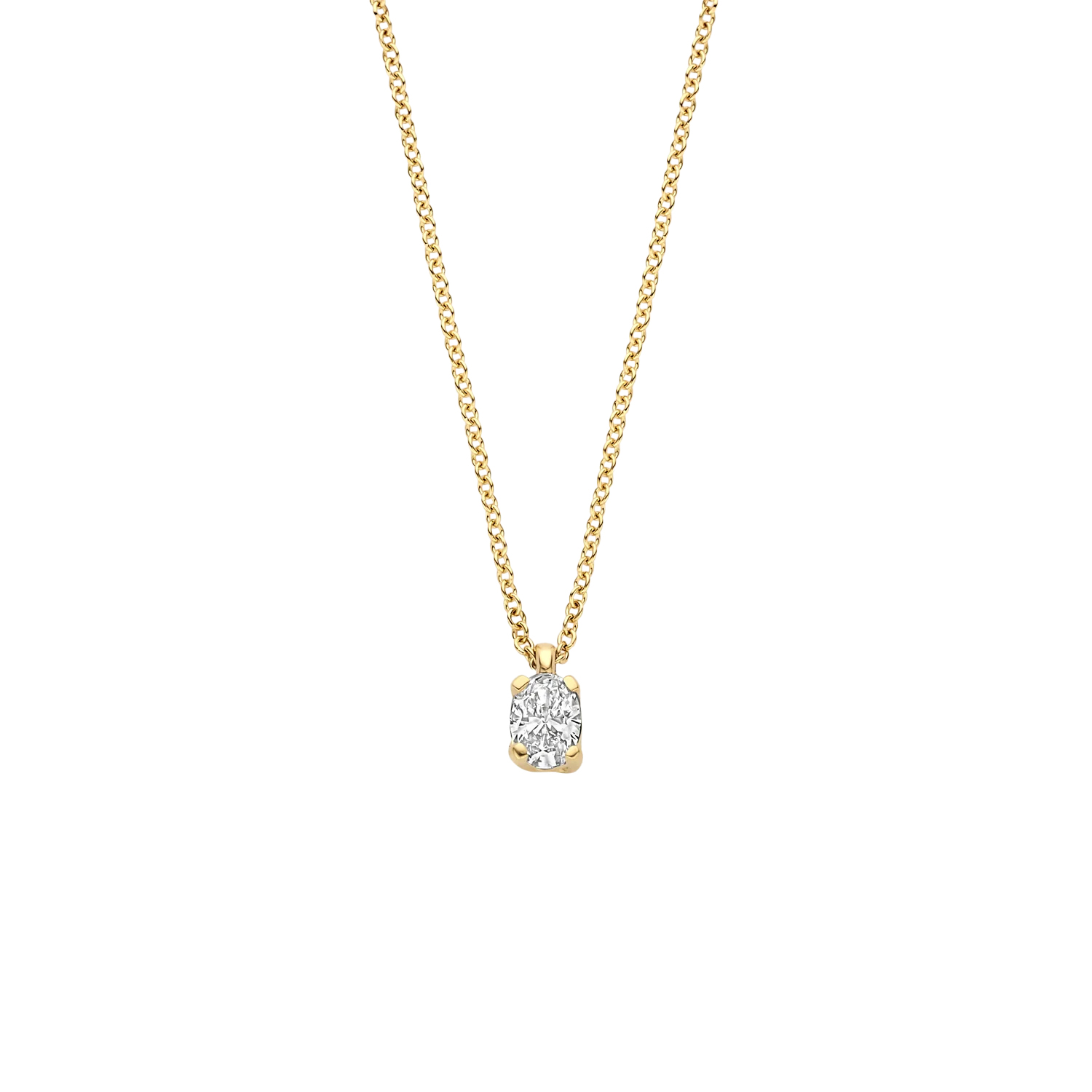 Dit schitterende collier van 14kt goud straalt verfijning uit met een diamant van 0,15 karaat, gezet in een elegante gele  hanger. De ketting, met een lengte van 42 cm, is perfect om alleen te dragen als subtiele blikvanger of in combinatie met andere sieraden uit onze collectie. Een prachtig stuk voor elke gelegenheid.