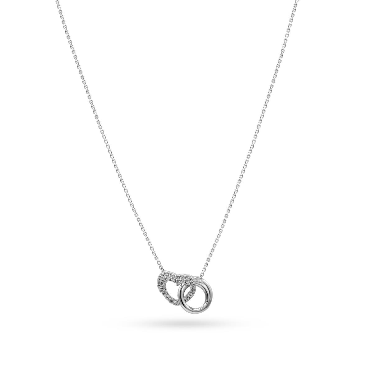 Deze ketting in 18 kt witgoud met hartje en cirkel symboliseert liefde, verbondenheid en elegantie in één verfijnd juweel. Het subtiele ontwerp combineert een moderne uitstraling met een tijdloze betekenis, waardoor deze ketting perfect is om elke dag te dragen. Een stijlvol en betekenisvol sieraad, ideaal als cadeau of als blijvende herinnering aan een bijzonder moment