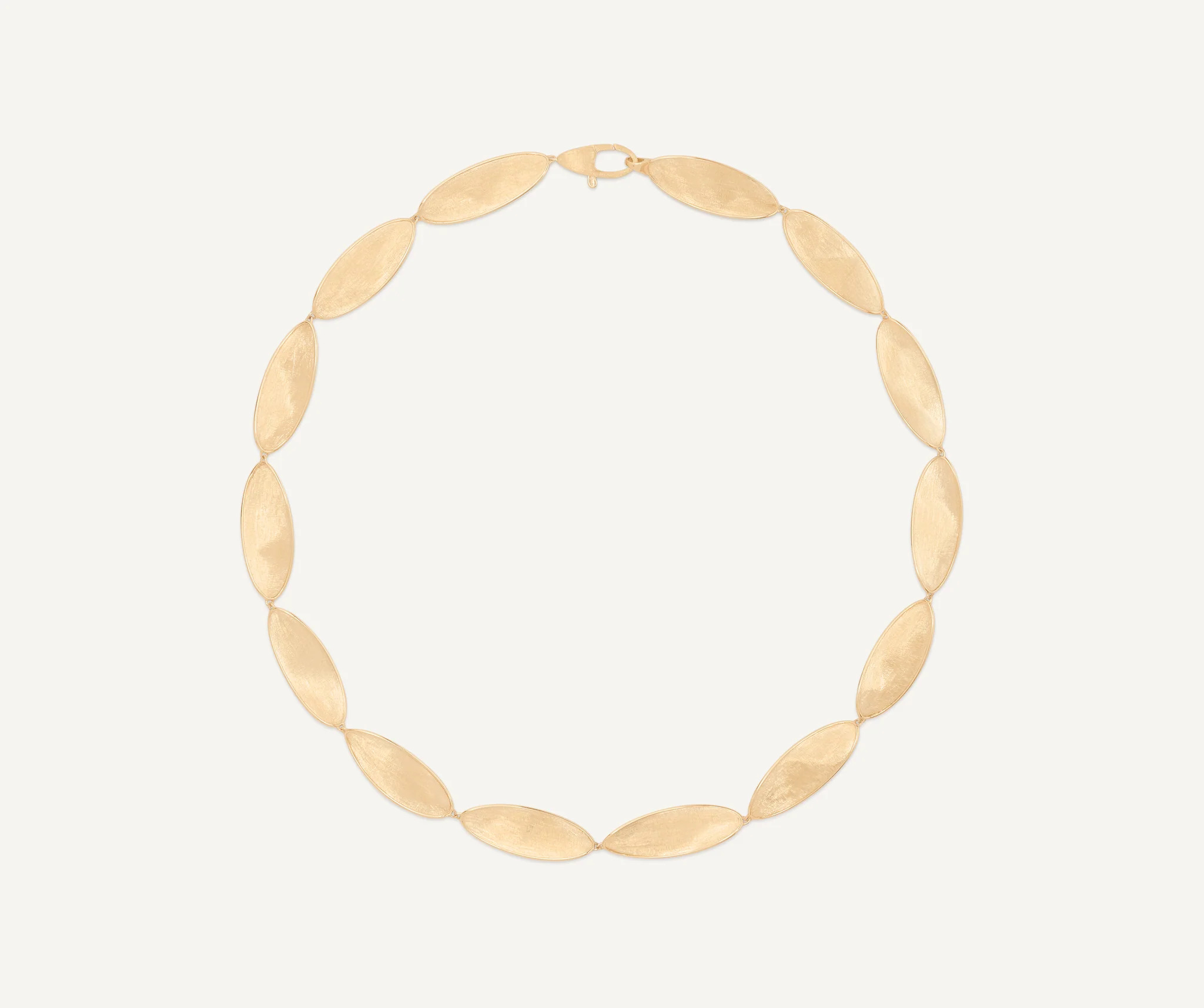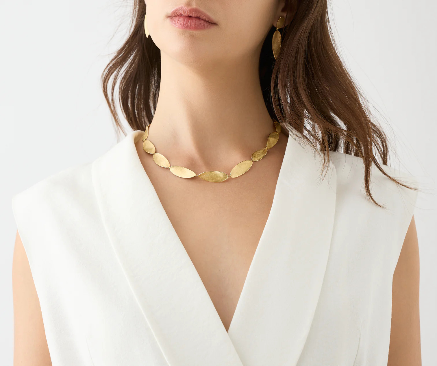 Laat je betoveren door de elegantie van de Lunaria 18kt geelgouden bladketting. Dit verfijnde juweel, vervaardigd uit 18 karaat geelgoud, is een ode aan de natuur en belichaamt de unieke stijl van het Italiaanse huis Marco Bicego. Elk blad is met de hand bewerkt tot een lichtgewicht, organische vorm die subtiel schittert bij elke beweging.