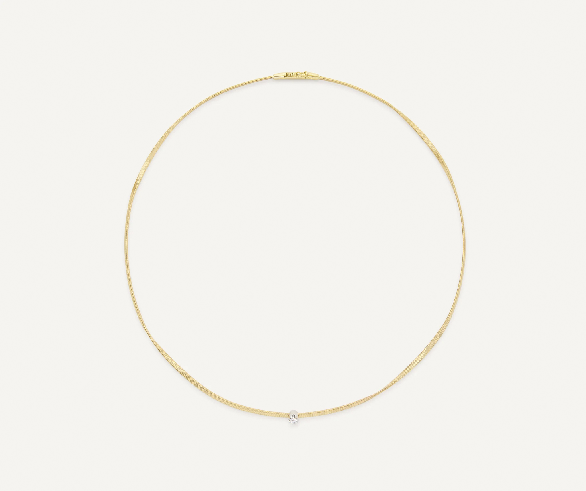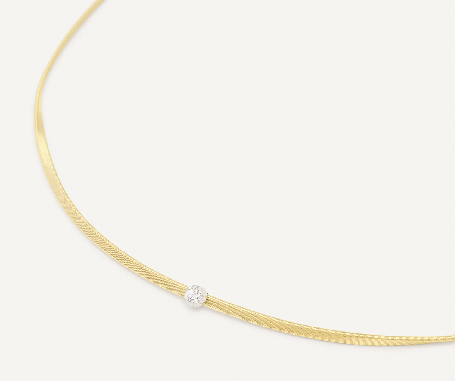 De MARRAKECH halsketting in 18kt geelgoud staat voor pure, ingetogen luxe. Het warme geelgoud vormt een tijdloze basis, terwijl de enkele diamant centraal de aandacht trekt met een subtiele, elegante schittering. Minimalistisch in vorm, groots in uitstraling: dit is zo’n juweel dat je elke dag wil dragen en dat toch altijd bijzonder blijft.