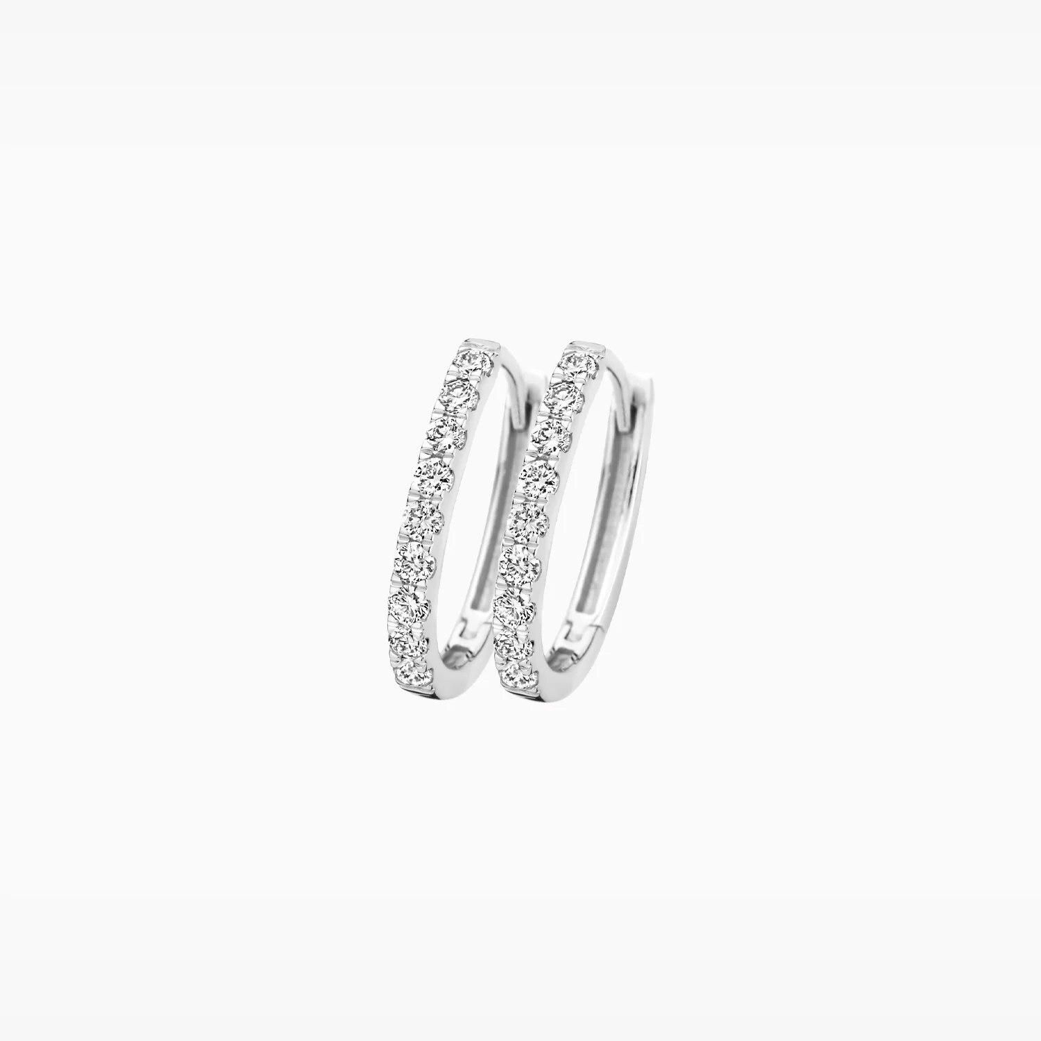 Gemaakt van 14k gecertificeerd gerecycled goud met lab grown diamant. Deze witgouden Lab Diamonds creolen zijn verrijkt met 18 briljant geslepen Lab grown Diamanten van in totaal 0,45 ct. aan de voorzijde. De ovaalvormige creolen zijn 16 mm hoog. Draag ze op zichzelf als glanzende blikvangers of gecombineerd met een Diamonds collier en bijpassende ring LG1013Y.