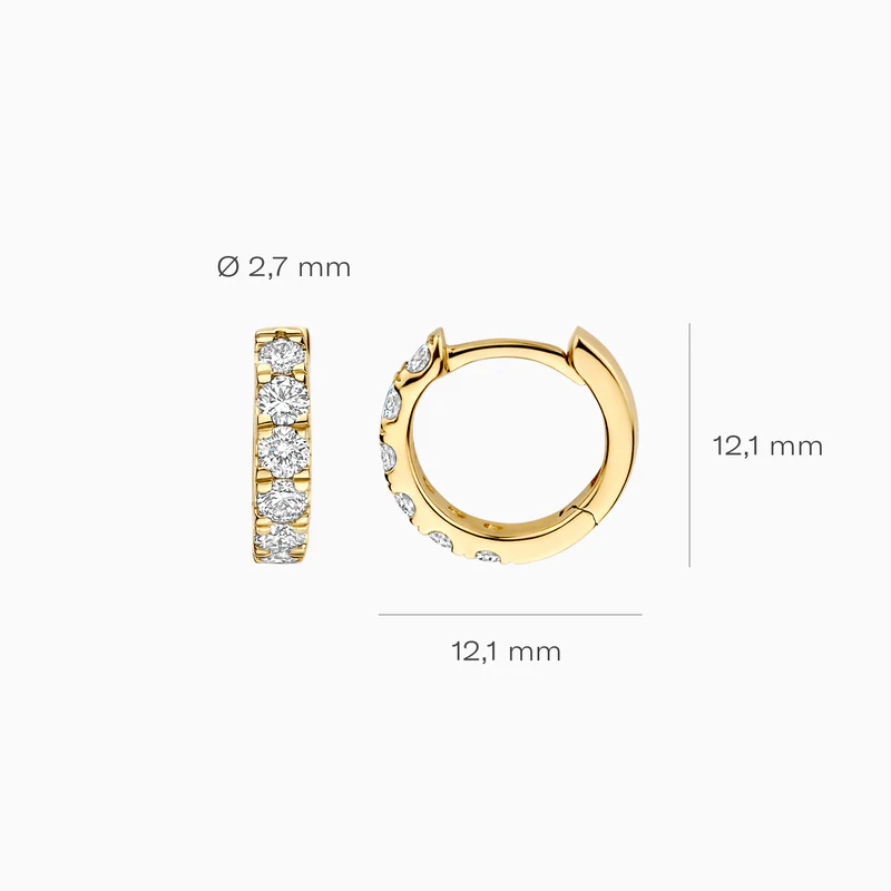 Deze lab diamonds oorringen in 14 karaat geelgoud combineren tijdloze elegantie met een bewuste, moderne keuze. De oorringen zijn subtiel maar opvallend versierd met fonkelende laboratoriumdiamanten, zorgvuldig geplaatst voor een schitterend effect bij elke beweging.