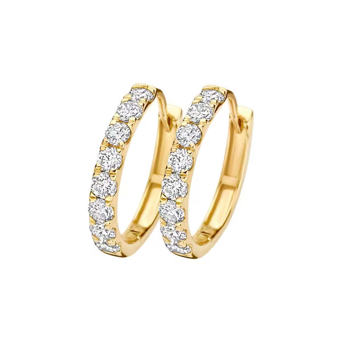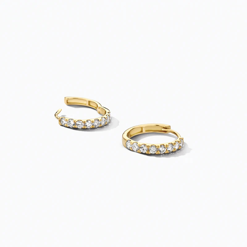 Deze lab diamonds oorringen in 14 karaat geelgoud combineren tijdloze elegantie met een bewuste, moderne keuze. De oorringen zijn subtiel maar opvallend versierd met fonkelende laboratoriumdiamanten, zorgvuldig geplaatst voor een schitterend effect bij elke beweging.