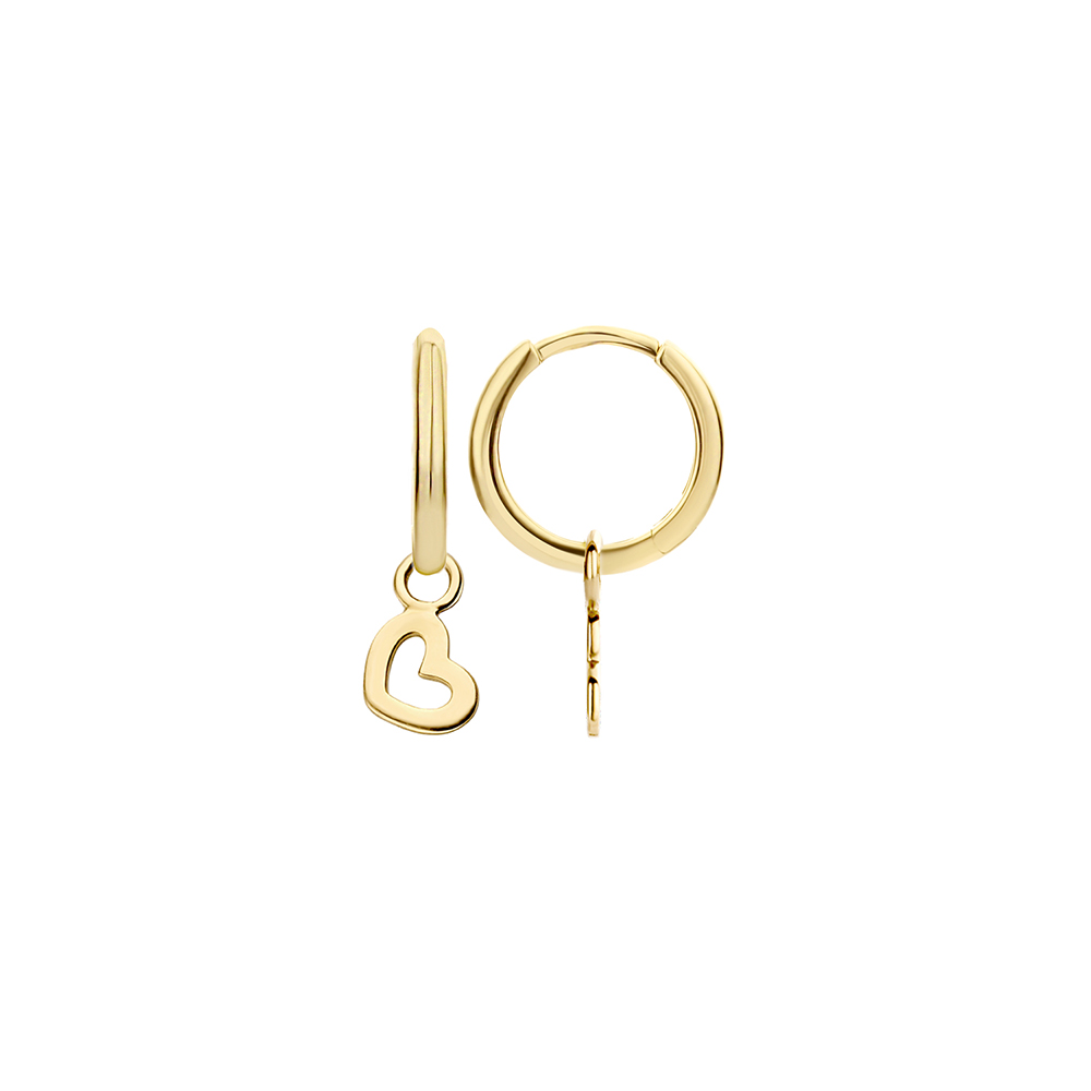 Met deze hartvormige oorbedels geef je een persoonlijk accent aan je oorbellen. De hartjes zijn 8,6 bij 5 mm en je schuift ze zo om een oorring met 1,75 mm doorsnede. Ze zijn gemaakt van 14k geelgoud.