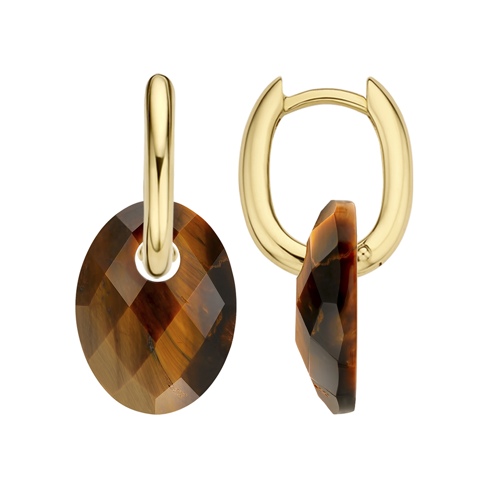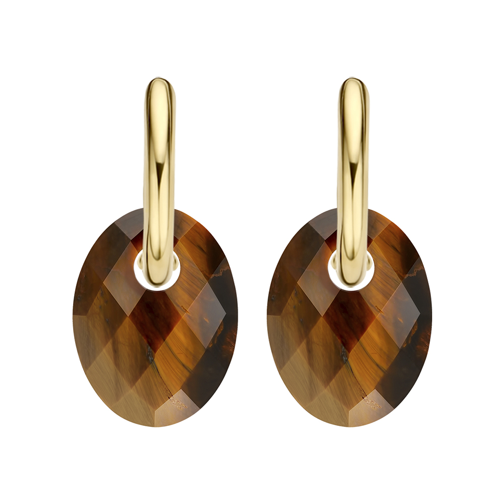 Ben je dol op een speelse en stijlvolle look? Dan zijn deze natuurstenen oorbedels van bruin/gouden tijgeroog perfect voor jou! De ovaalvormige bedels, met prachtig facetslijpsel, brengen warmte en een unieke uitstraling naar je sieradencollectie.