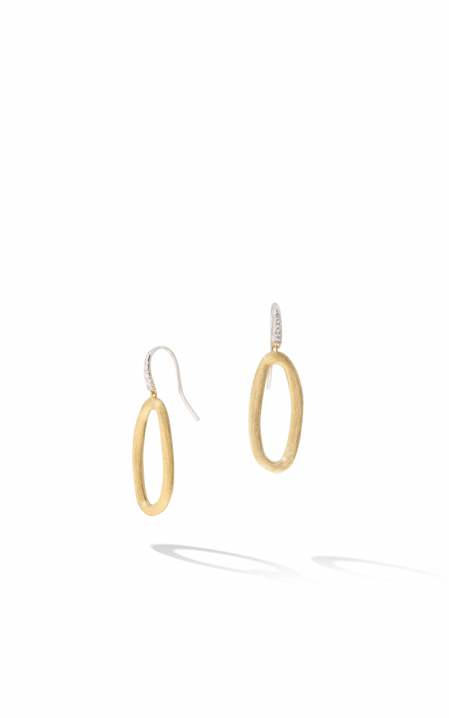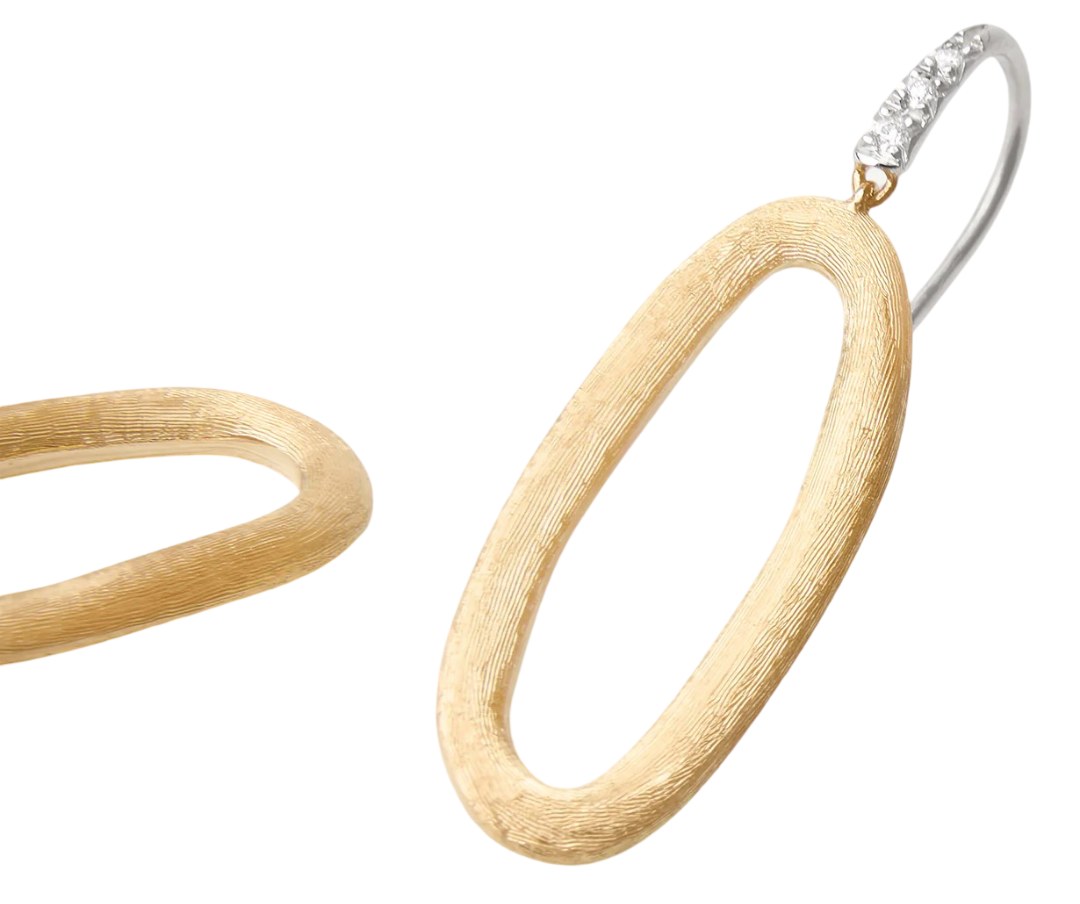 Deze elegante oorbellen uit de Jaipur Link-collectie van Marco Bicego combineren handgegraveerde schakels van 18kt geelgoud tot een stijlvol, vloeiend geheel. De speelse beweging en warme gloed maken ze tot een verfijnde eyecatcher – zowel overdag als ’s avonds.