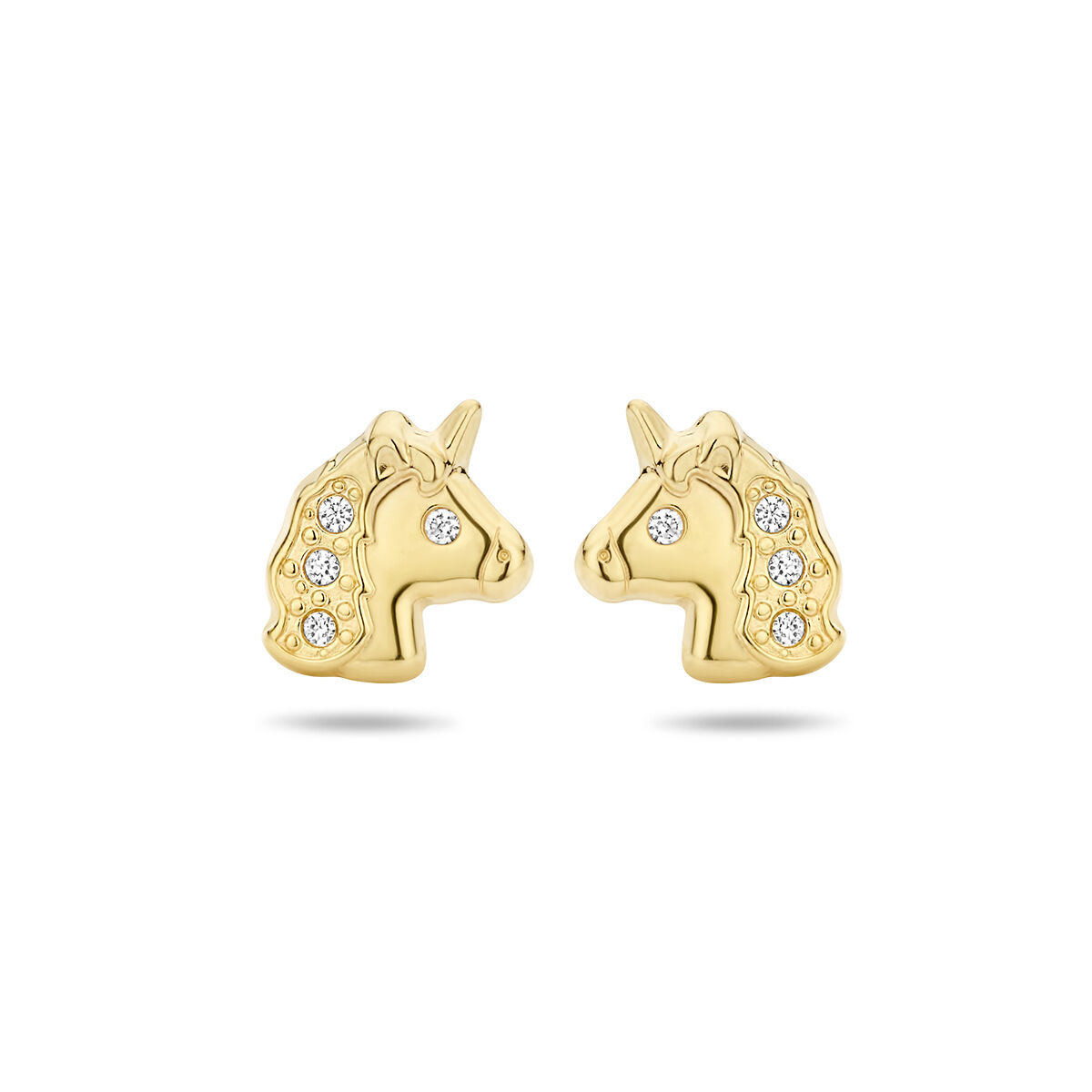 14k Geelgouden oorknoppen uitgevoerd met schitterende zirkonia. De oorknoppen hebben een afmeting van 7.3x5.7mm.