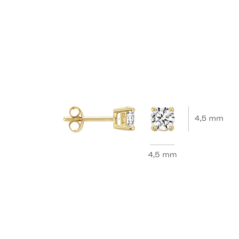 Deze solitaire oorstekers, vervaardigd uit 14kt geelgoud, combineren klassieke elegantie met een moderne twist dankzij de sprankelende zirconia stenen. De heldere zirconia's zijn zorgvuldig geplaatst om maximale schittering en elegantie te bieden, waardoor ze een prachtige glans aan je look toevoegen. Perfect voor zowel alledaagse situaties als formele gelegenheden, deze oorstekers zijn een veelzijdige toevoeging aan elke sieradencollectie.