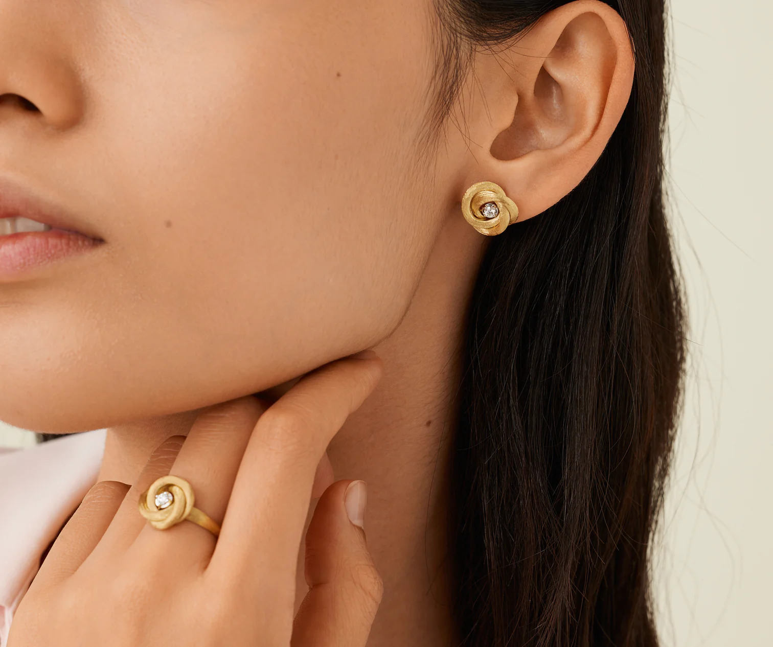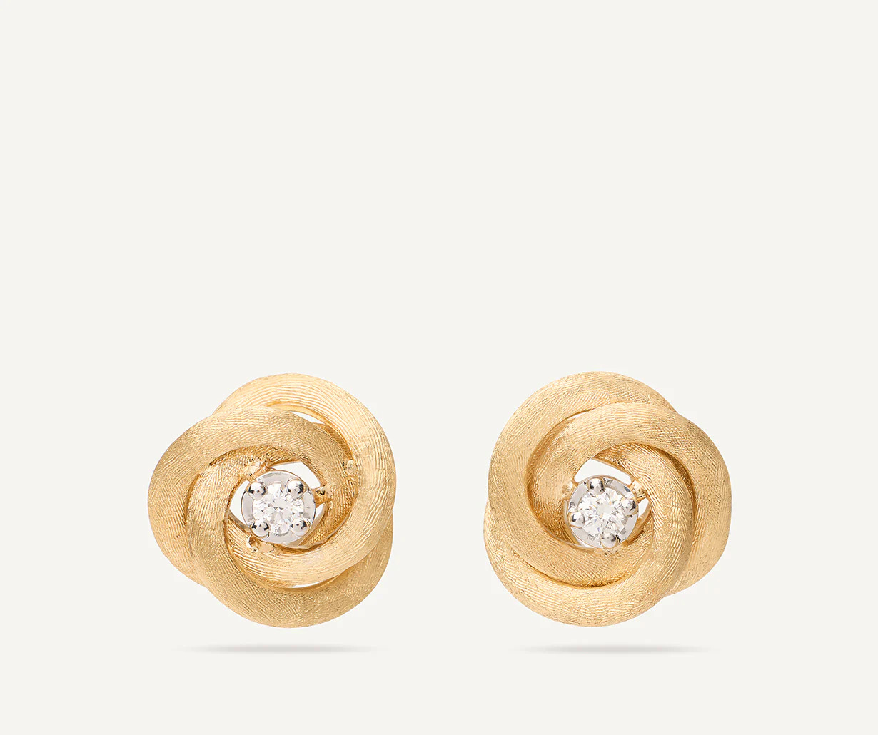Elke oorbel is vervaardigd uit 18 karaat geelgoud en witgoud en heeft de vorm van een delicate bloem. In het hart van elke bloem fonkelt een zorgvuldig geselecteerde diamant, wat zorgt voor een geraffineerde schittering bij elke beweging. De afwerking is volledig handmatig uitgevoerd met de traditionele Bulino-techniek, waardoor het oppervlak een unieke, zijdeachtige textuur krijgt die typerend is voor de sieraden van Marco Bicego.