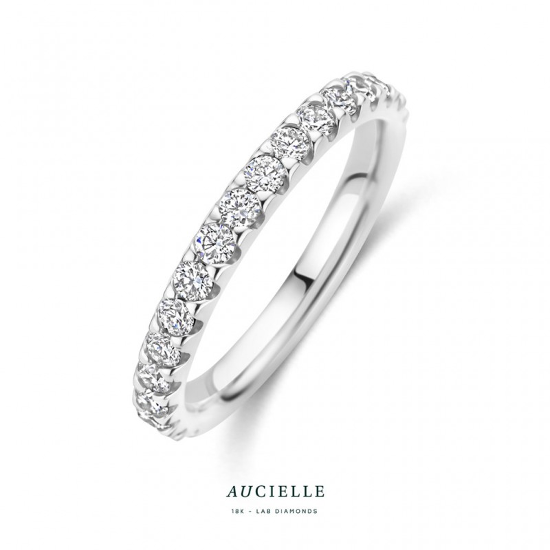 ring 18kt witgoud met briljant 0.12ct en saffier 0.45ct - 10R0307W