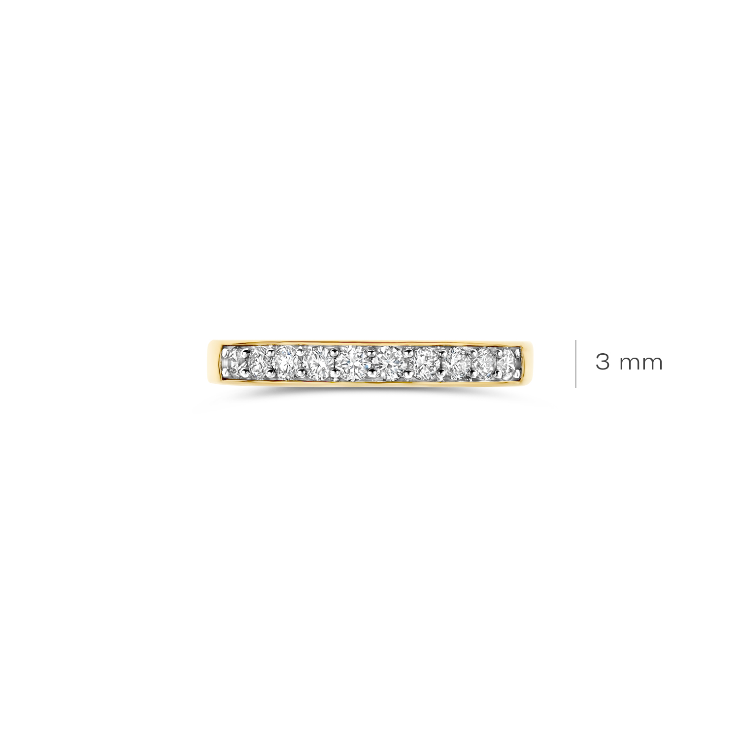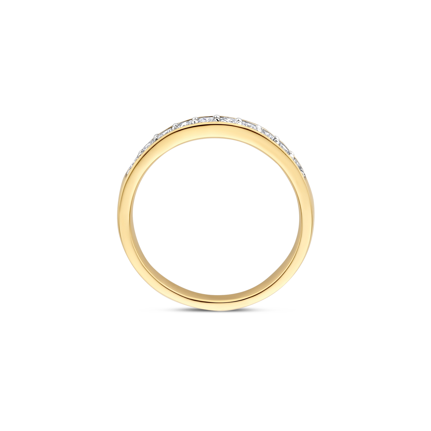 Deze verfijnde ring, gemaakt van 14kt geelgoud, straalt subtiele luxe uit. Het glanzend gepolijste goud is bezet met 14 briljant geslepen lab grown diamanten, vakkundig gezet in een elegante pavézetting. Met een totaalgewicht van 0,40ct en een slanke banddiameter van 1,7 mm, is dit sieraad de belichaming van verfijning.