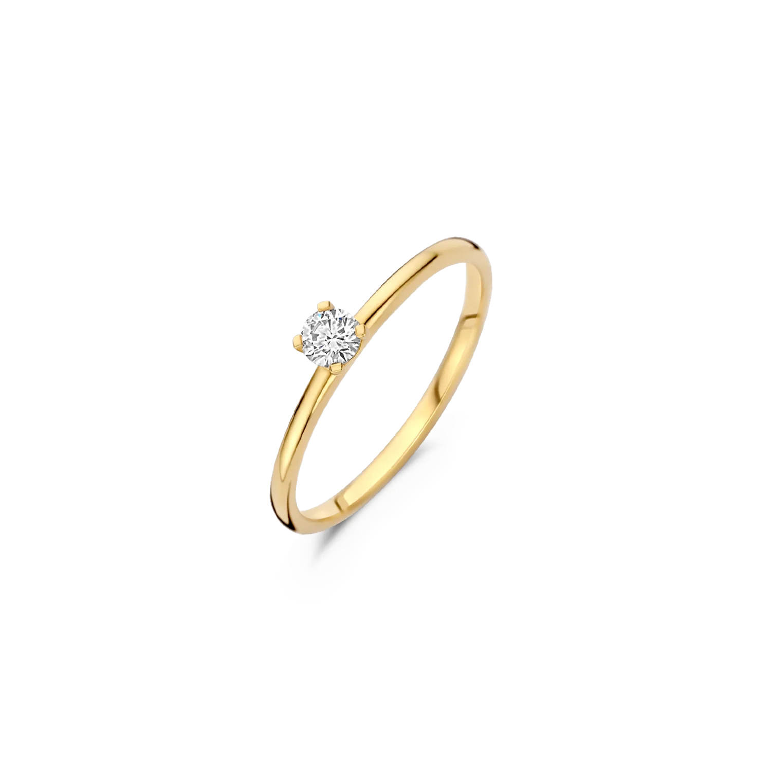 Deze verfijnde ring van het merk Blush is een tijdloos sieraad vervaardigd uit 14 karaat geelgoud en bezet met een fonkelend diamant. Het elegante ontwerp straalt subtiele luxe uit en is perfect geschikt voor elke gelegenheid – van dagelijks gebruik tot een bijzonder moment zoals een verloving of jubileum.