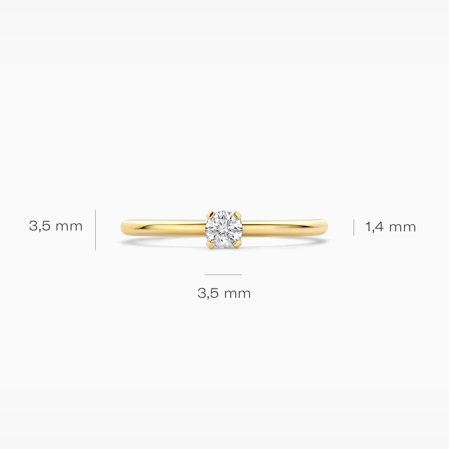 De diamanten zijn briljant geslepen, wat zorgt voor maximale schittering en een klassieke uitstraling. De ring heeft een slanke, comfortabele pasvorm en kan prachtig gecombineerd worden met andere Blush sieraden of als solitaire blikvanger gedragen worden.