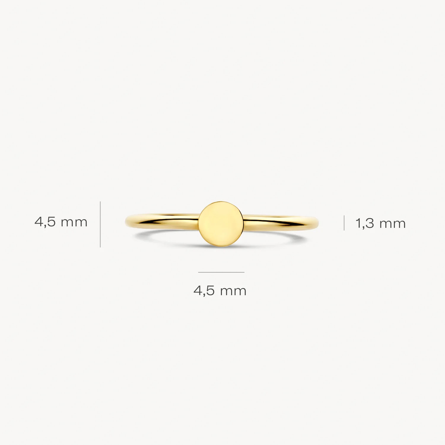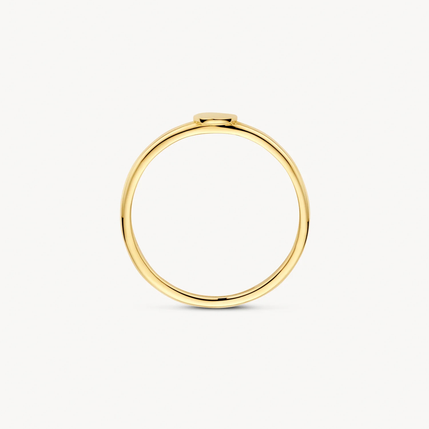 Deze verfijnde Blush ring van 14 karaat geelgoud is het toonbeeld van subtiele elegantie. Het glad gepolijste gouden plaatje vormt een zacht glanzend accent op de slanke band en straalt ingetogen luxe uit. Draag haar solo voor een minimalistische look of combineer met andere ringen voor een persoonlijke stijl.