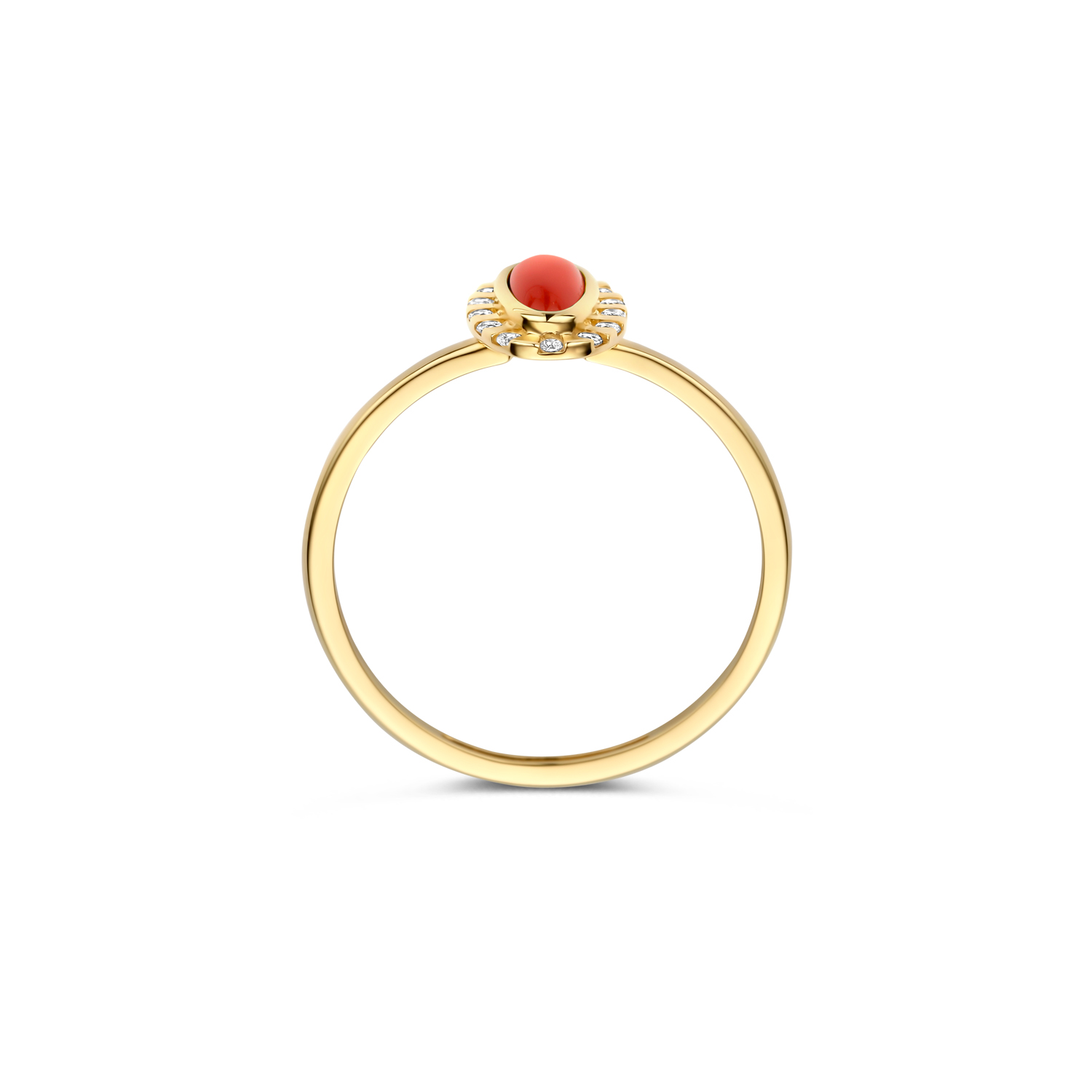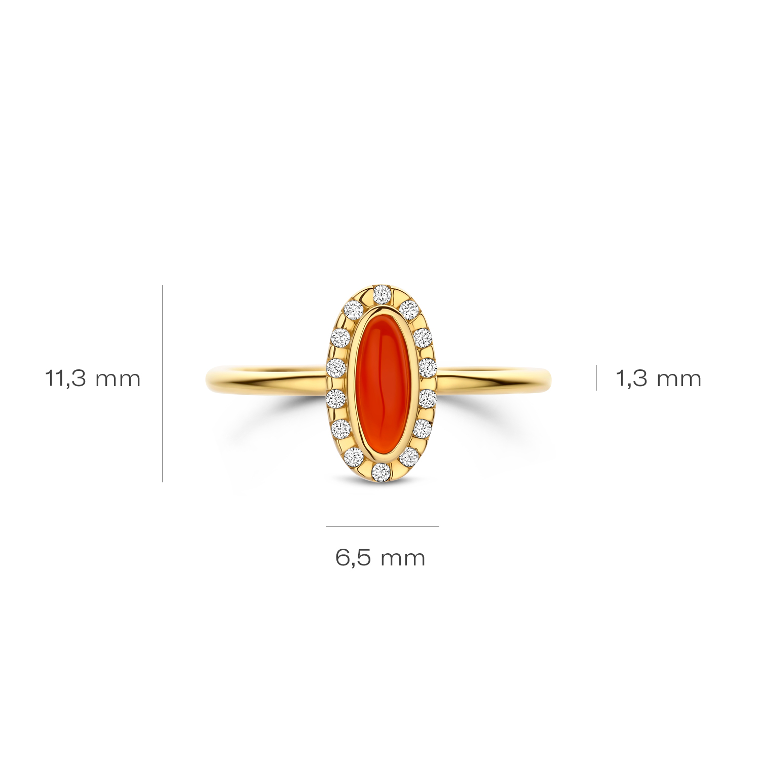 Een ovaalvormige granaat steen siert deze elegante ring gemaakt van 14k geelgoud. Deze elegante eyecatcher doet het goed op zichzelf maar matcht ook prachtig met andere ringen uit onze collectie.