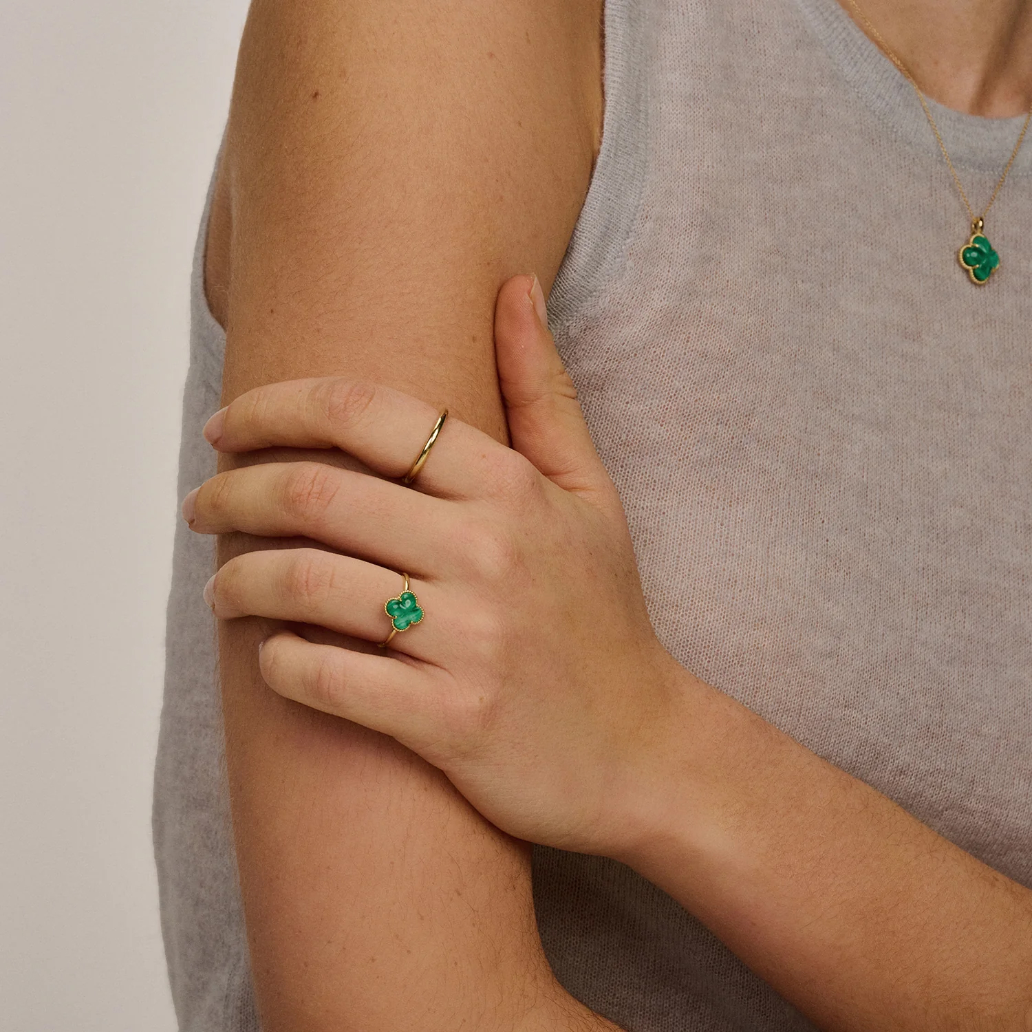 De diep groene kleur van de agaat staat symbool voor balans en harmonie, terwijl het fijne goud een subtiele, vrouwelijke uitstraling geeft. Of je deze ring nu solo draagt voor een minimalistische look, of combineert met andere sieraden voor een speels effect – dit stuk voegt gegarandeerd klasse toe aan elke outfit.