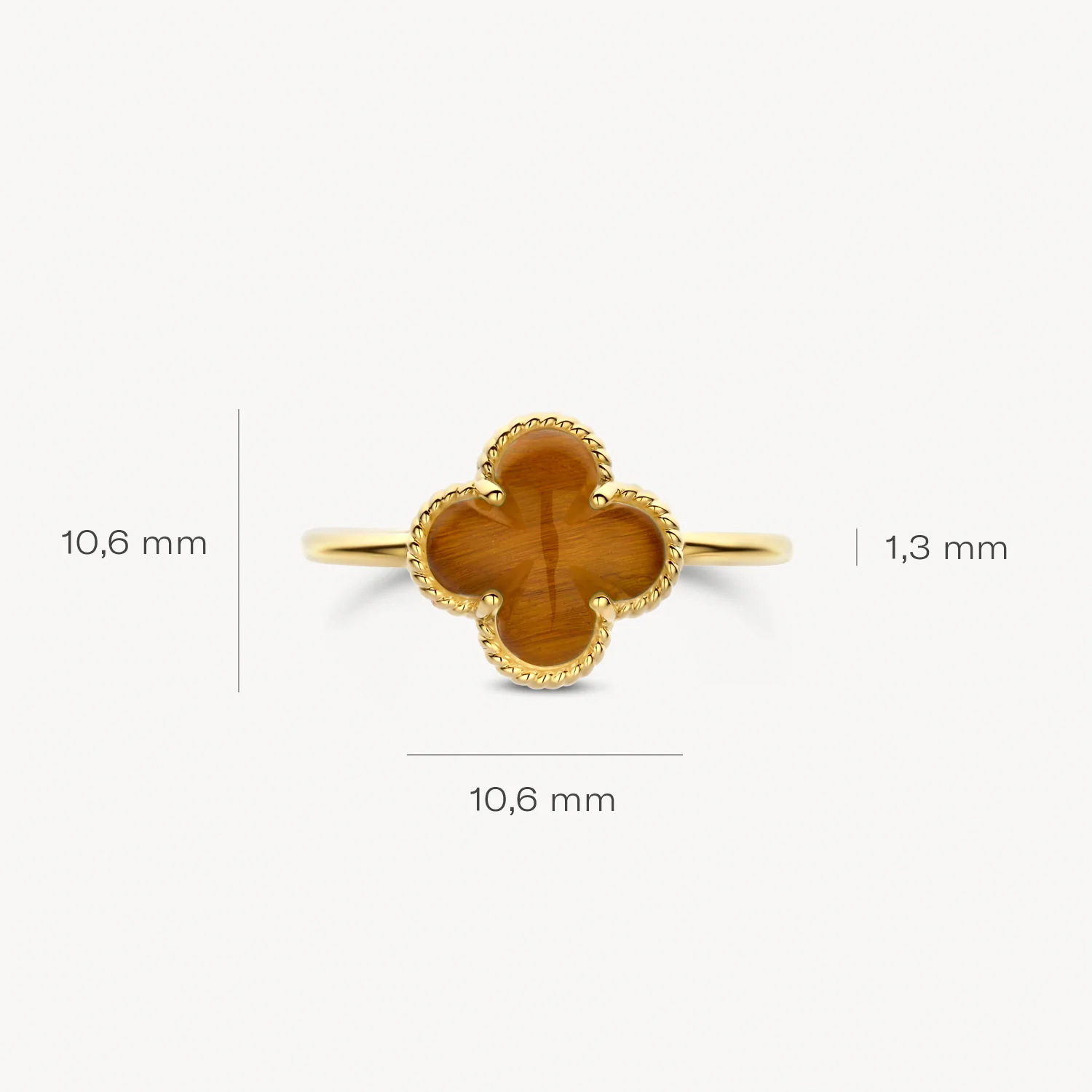De bruine kleur  staat symbool voor balans en harmonie, terwijl het fijne goud een subtiele, vrouwelijke uitstraling geeft. Of je deze ring nu solo draagt voor een minimalistische look, of combineert met andere sieraden voor een speels effect – dit stuk voegt gegarandeerd klasse toe aan elke outfit.