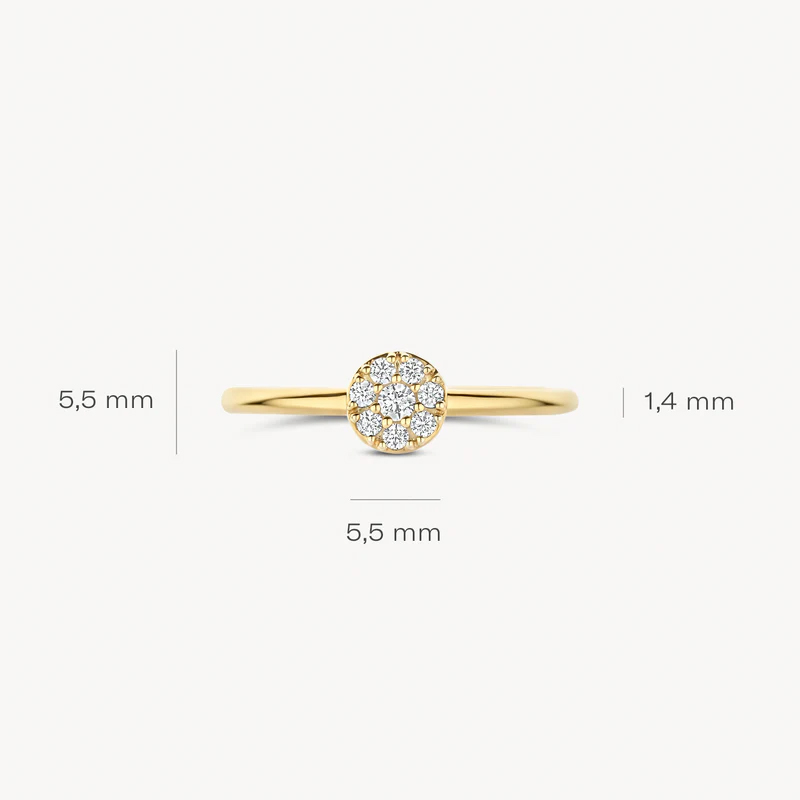 De combinatie van het warme geelgoud en de heldere zirconia’s zorgt voor een luxueuze uitstraling die bij elke gelegenheid past. Het pavé zetwerk geeft extra glamour, waardoor deze ring ideaal is als verlovingsring, cadeau of eyecatcher in uw eigen collectie.