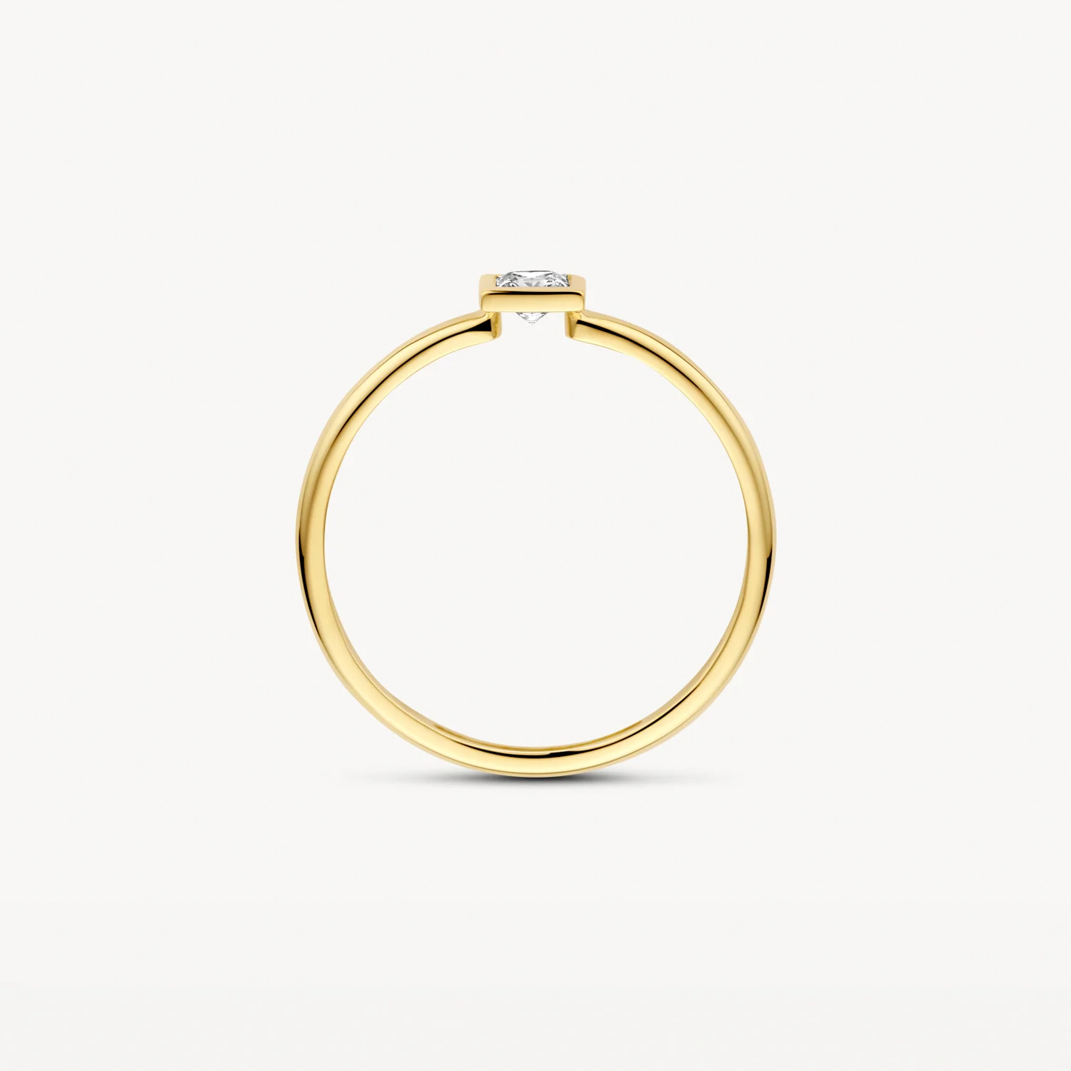 Licht en elegant, deze Blush ring van 14 karaat geelgoud is een subtiele eyecatcher met een verfijnde schittering. De heldere zirkonia is met zorg gezet en weerspiegelt het licht op sprankelende wijze, waardoor de ring een klassieke, luxe uitstraling krijgt – zonder overdaad.