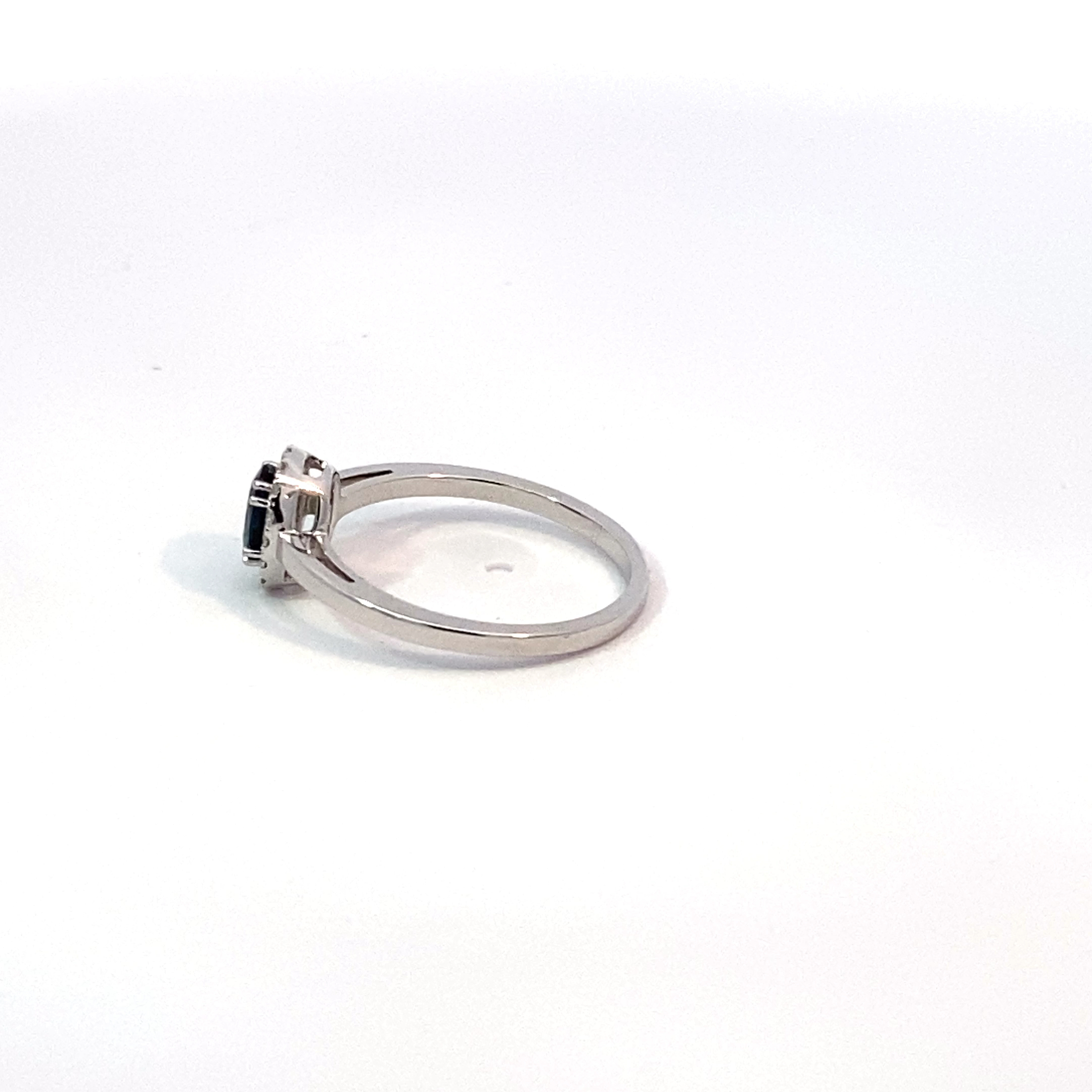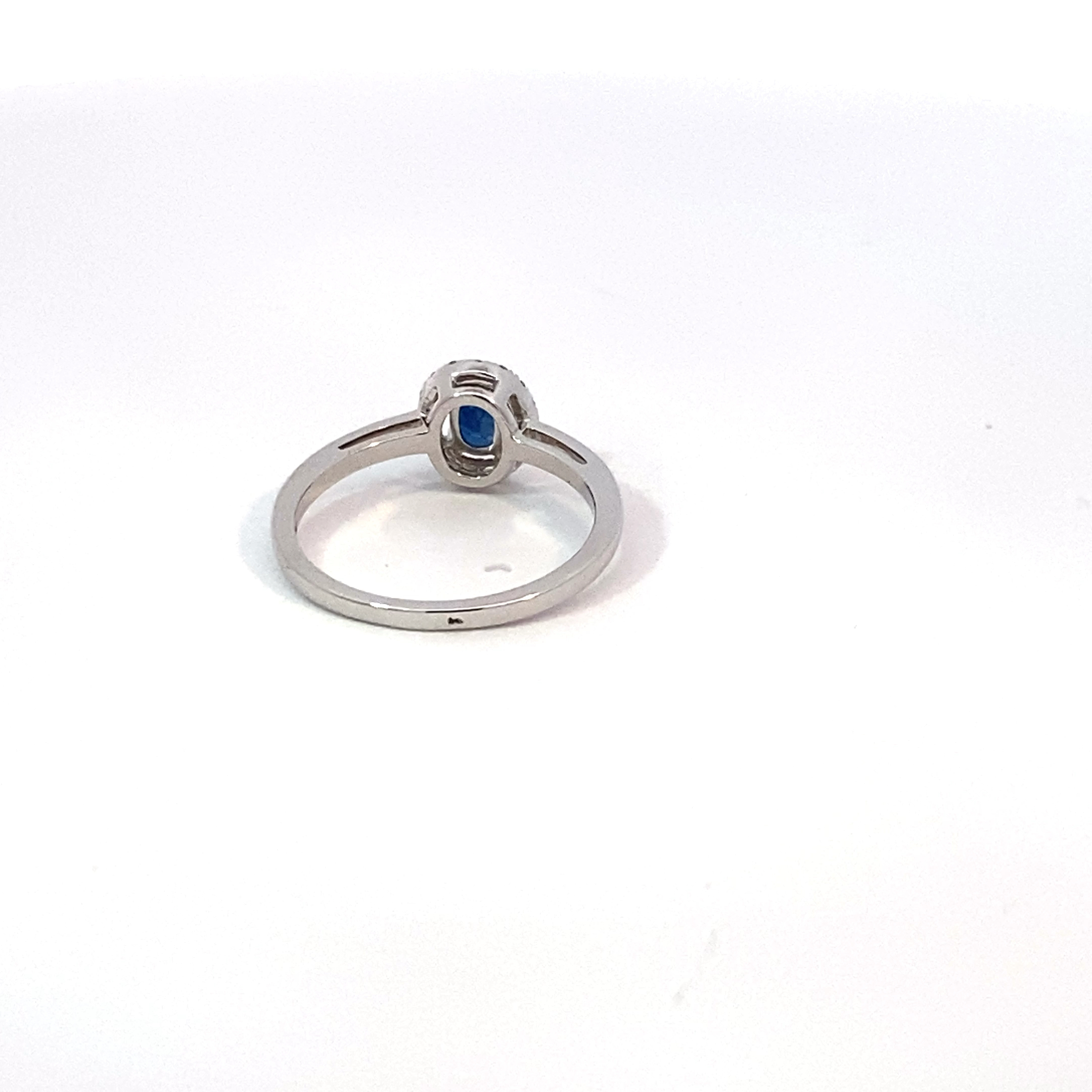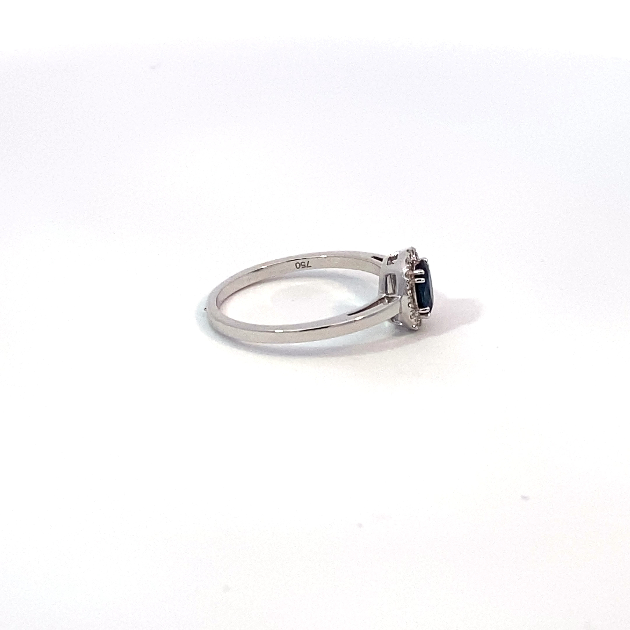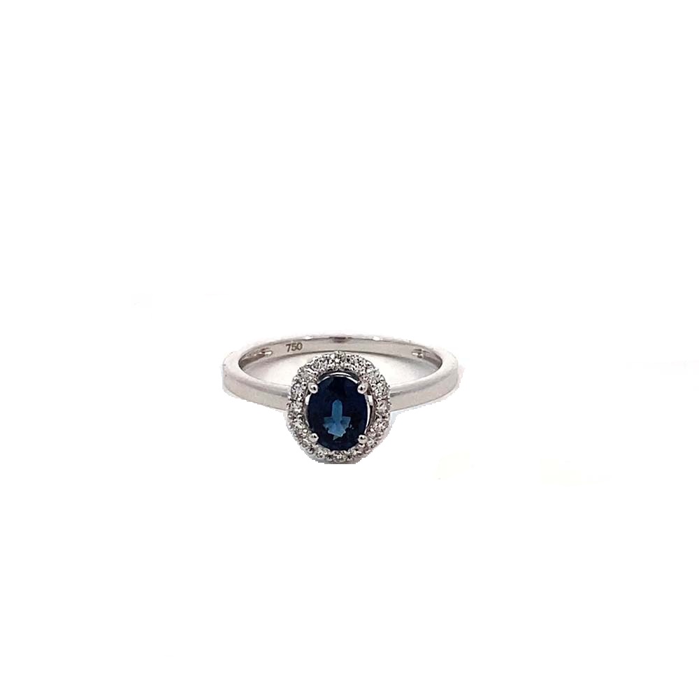 Ervaar de betoverende allure van onze ring van 18kt witgoud, schitterend versierd met briljanten en een stralende saffier. De levendige blauwe tint van de saffier wordt prachtig geaccentueerd door de fonkelende briljanten, die de ring een luxueuze uitstraling geven. Het koele witgoud zorgt voor een moderne en elegante basis, waardoor de edelstenen optimaal tot hun recht komen. Deze ring is het ultieme symbool van verfijning en stijl—perfect voor speciale gelegenheden of om dagelijks een vleugje elegantie toe te voegen. Voeg deze tijdloze schoonheid toe aan je collectie en laat je handen spreken met charme en klasse.