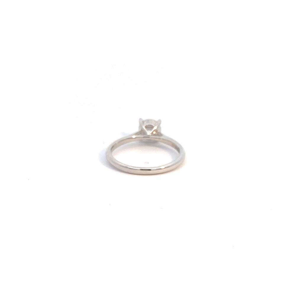 Deze prachtige ring, vervaardigd uit 18kt witgoud, is een toonbeeld van tijdloze elegantie en verfijning. Het sieraad is bezet met een schitterende briljant van 0.86ct, die een indrukwekkende glans en allure biedt. Het witgoud vormt de perfecte achtergrond om de briljant optimaal tot zijn recht te laten komen, waardoor een harmonieuze en luxueuze uitstraling ontstaat.