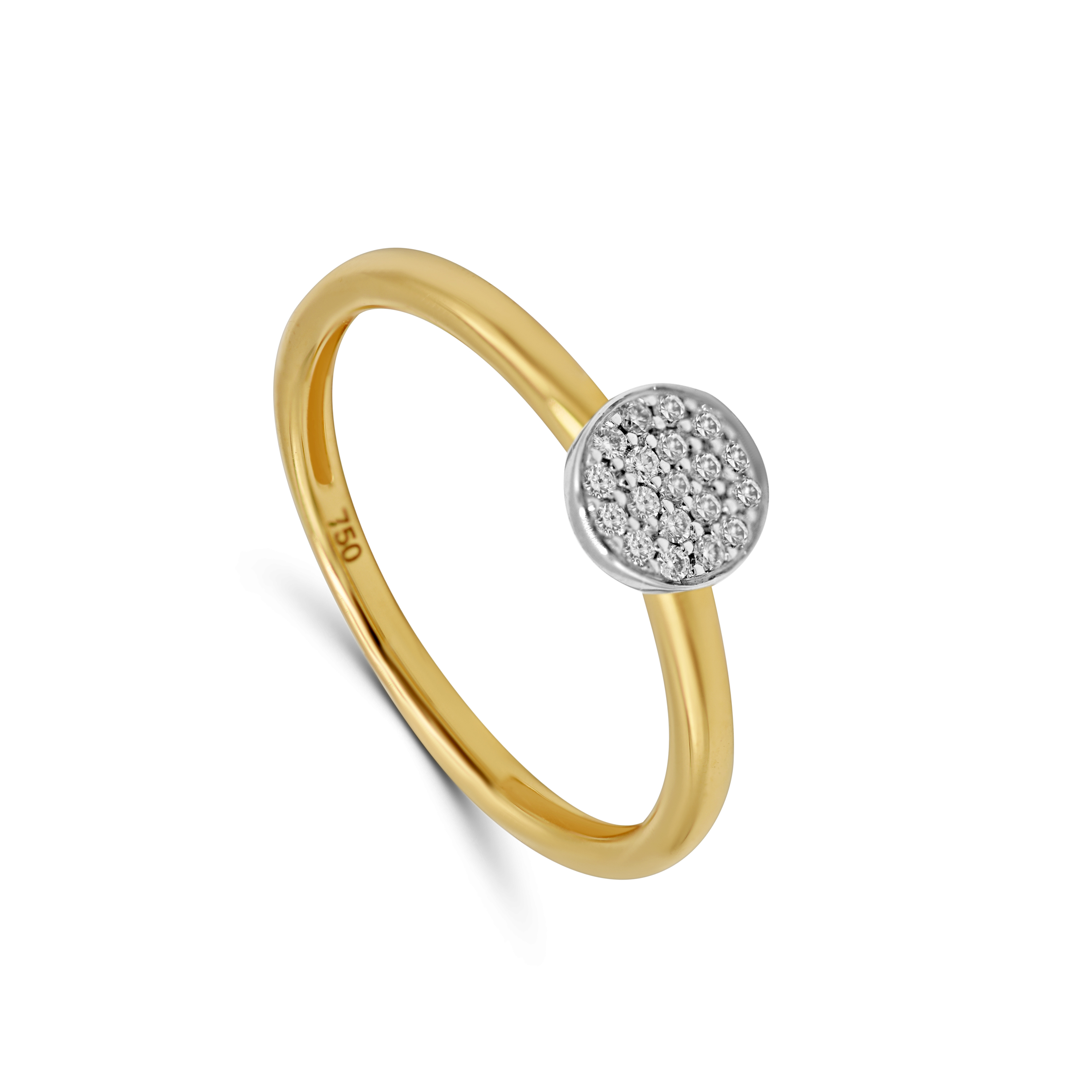 Deze verfijnde bicolour ring is vakkundig vervaardigd uit 18 karaat geel- en witgoud en schittert door een pavézetting van briljant geslepen diamanten. De combinatie van de warme gloed van geelgoud en de koele elegantie van witgoud maakt dit sieraad tot een tijdloos en stijlvol statement.