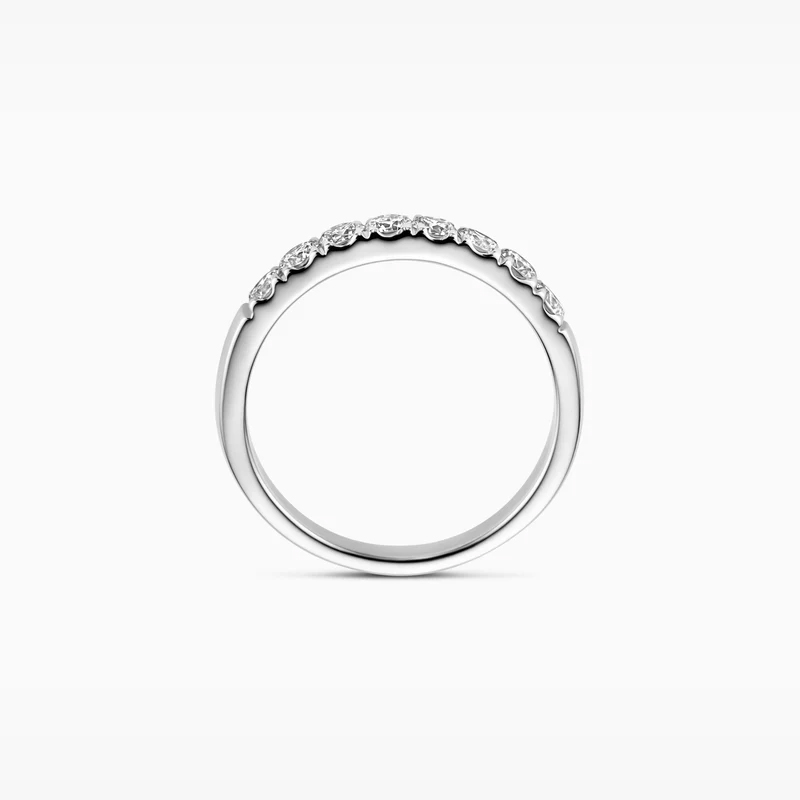 Gemaakt van gecertificeerd gerecycled goud met een lab grown diamant. Deze 14k witgouden Lab Diamonds ring is uitgevoerd in glanzend gepolijst goud en voorzien van 8 briljant geslepen lab grown diamanten, gezet in een pavé zetting. Het gewicht van de lab grown diamanten in deze ring is totaal 0.56ct. De Ø 3 millimeter witgouden ring is perfect to combineren met andere (wit)gouden Blush Sieraden. Draag je hem solitair, dan is deze slanke Blush ring een elegante blikvanger.