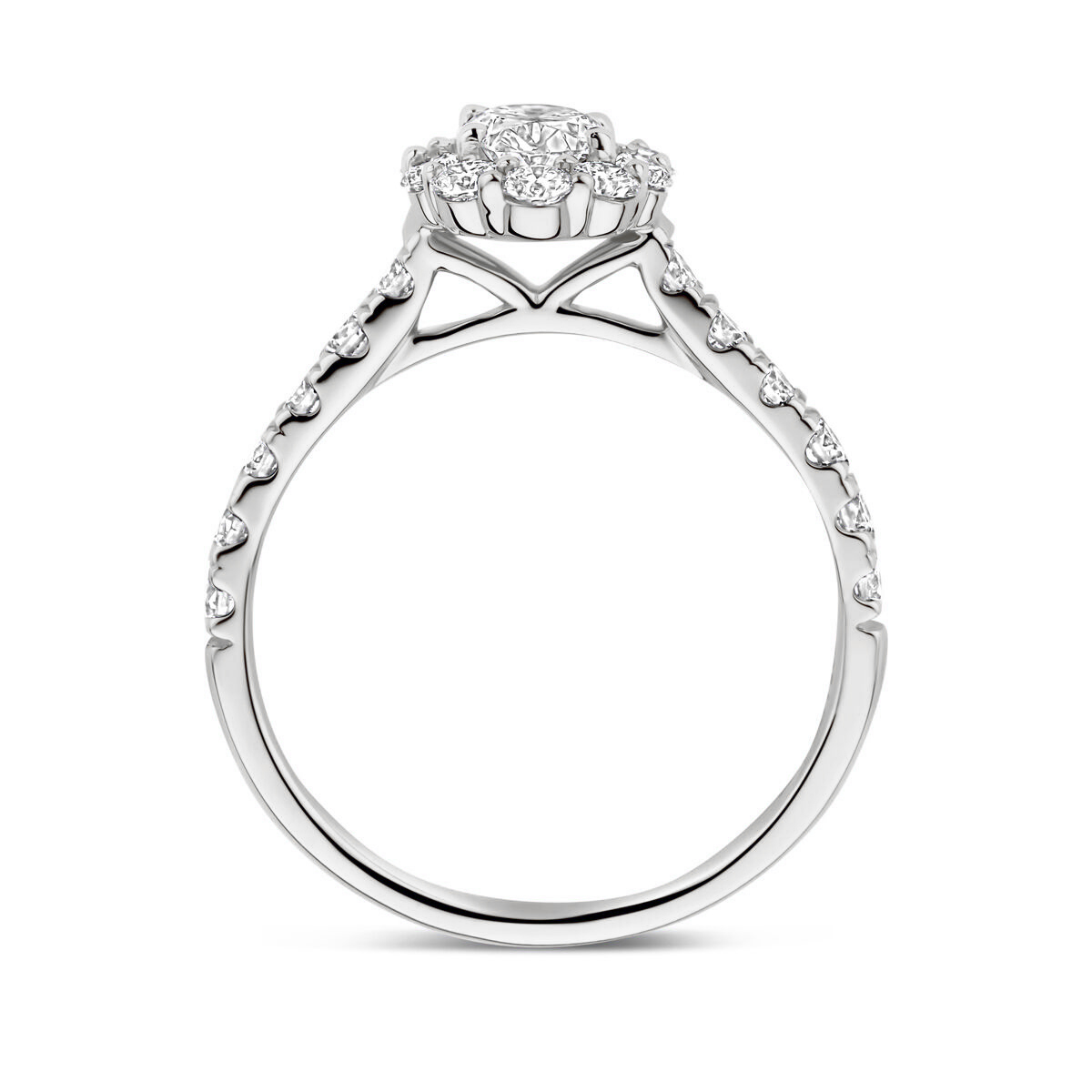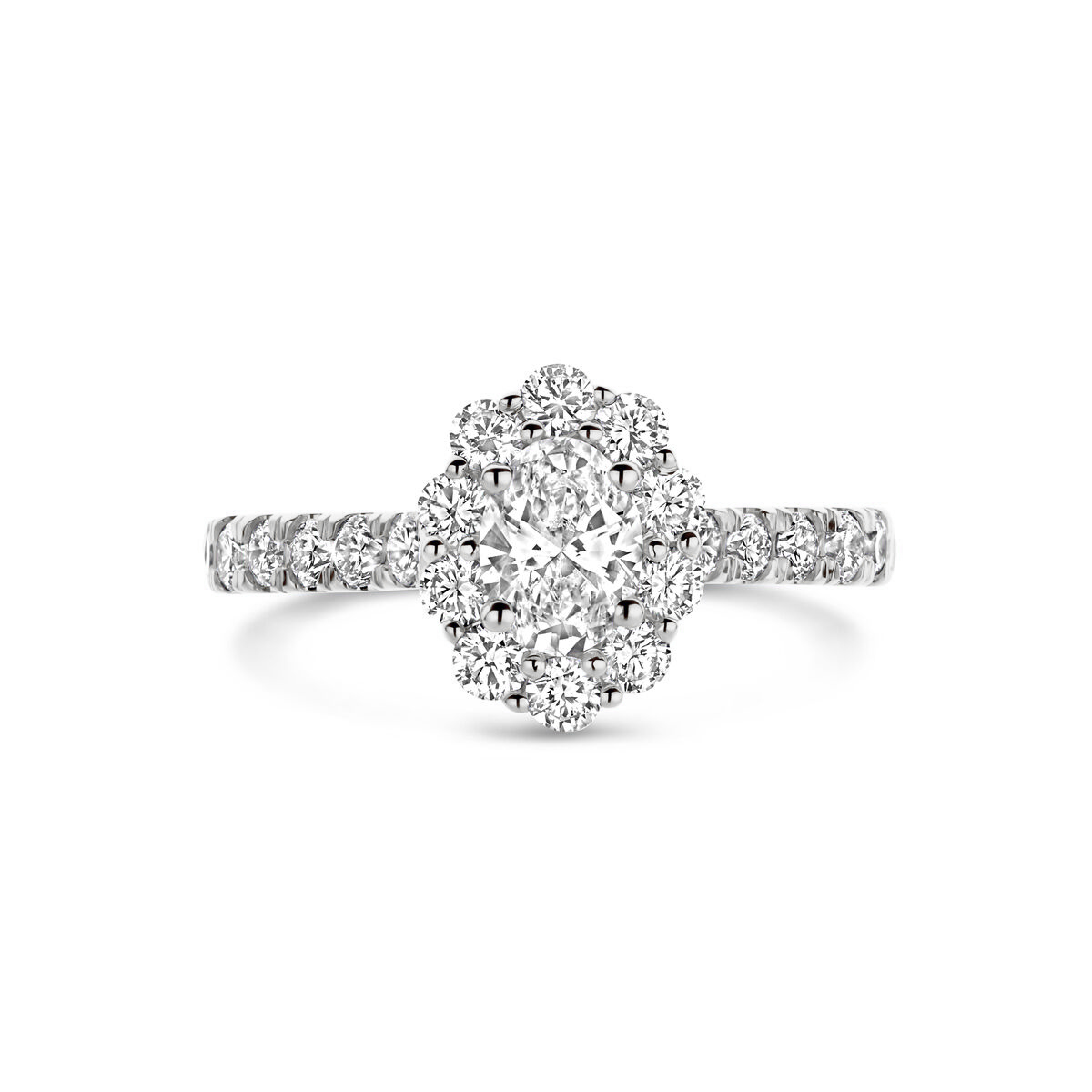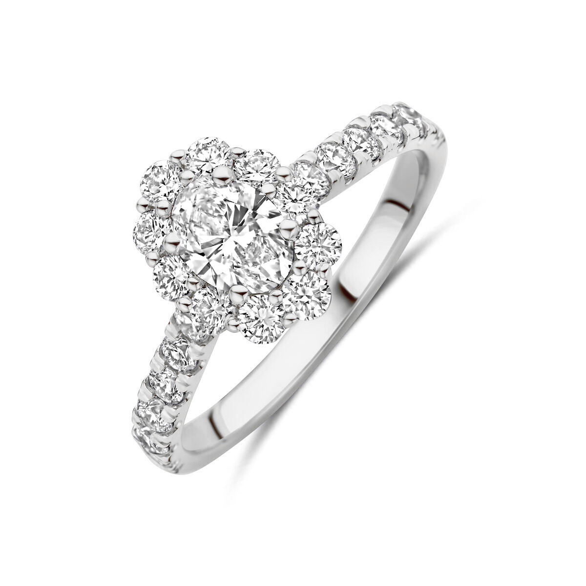 14k Geelgouden ring uitgevoerd met lab grown diamant. De ring heeft een afmeting van 10.5x8mm. Het totale diamantgewicht is 1.29ct. Lab grown diamanten zijn diamanten die ontstaan in een laboratorium. Onder extreem hoge druk en temperatuur wordt het natuurlijk ontstaansproces nagebootst met als eindresultaat een diamant met dezelfde chemische eigenschappen maar met een andere oorsprong.