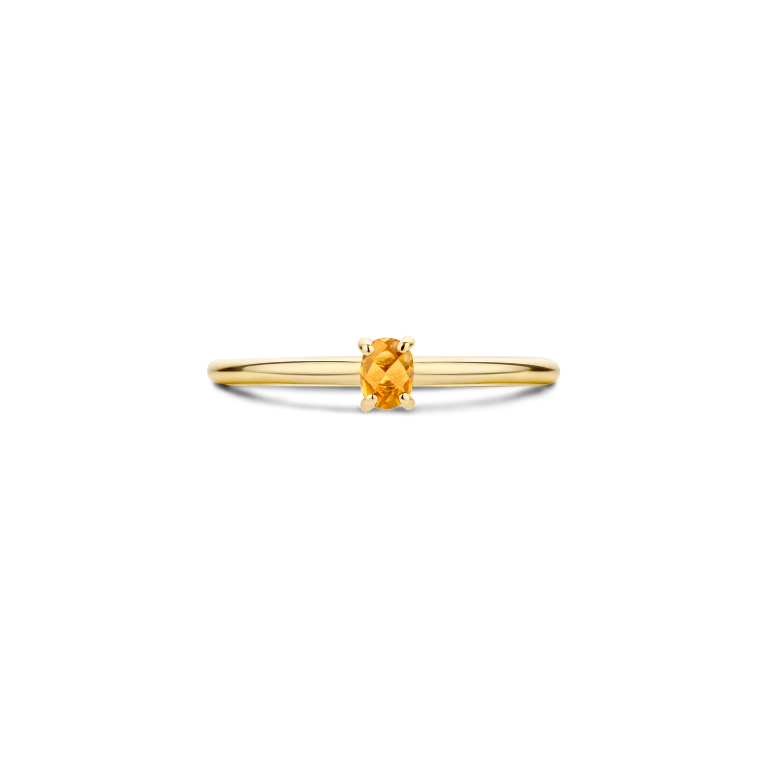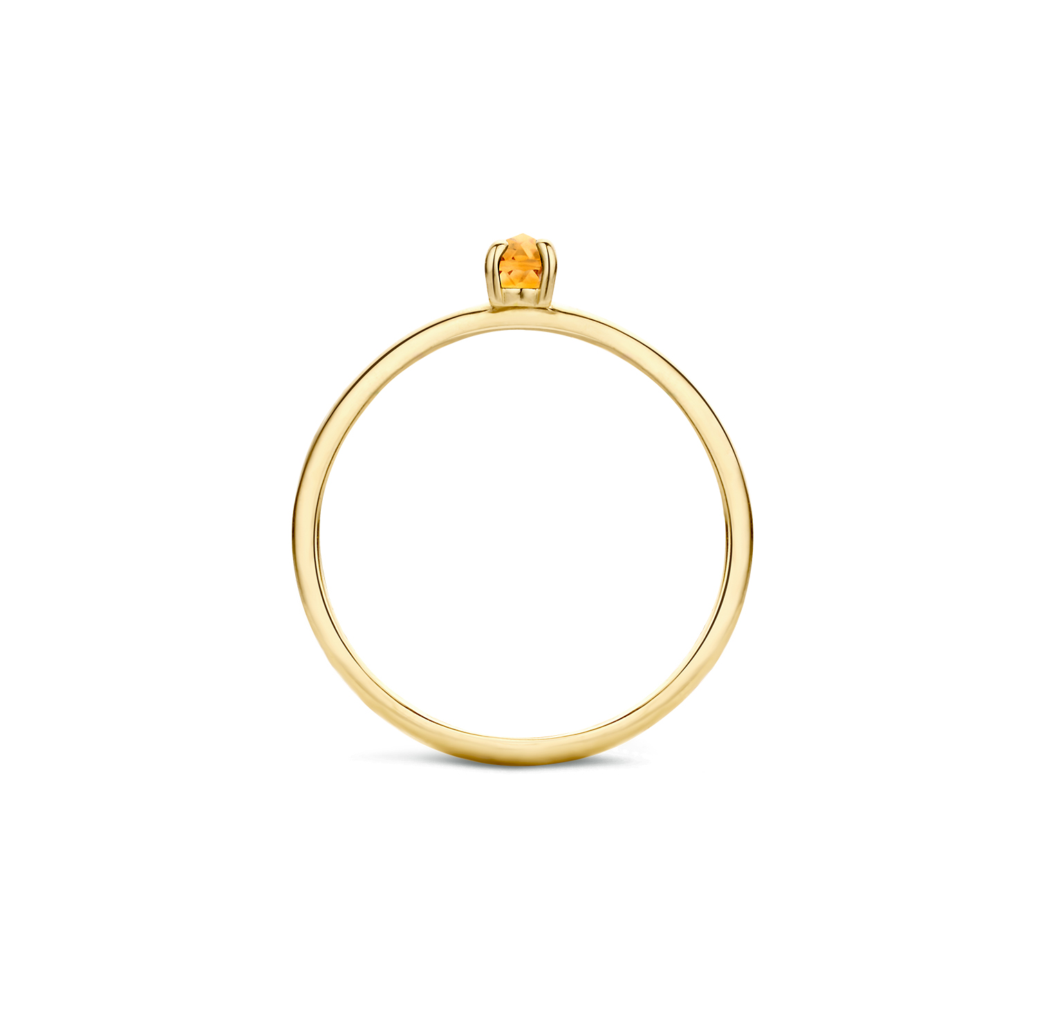 Een prachtige citrine natuursteen siert deze elegante ring van 14k geelgoud. De band is 1,4 mm breed en de steen een grootte van 3,2 mm bij 4,3 mm. Prachtig om op zichzelf gedragen te worden of met andere ringen uit onze collectie.