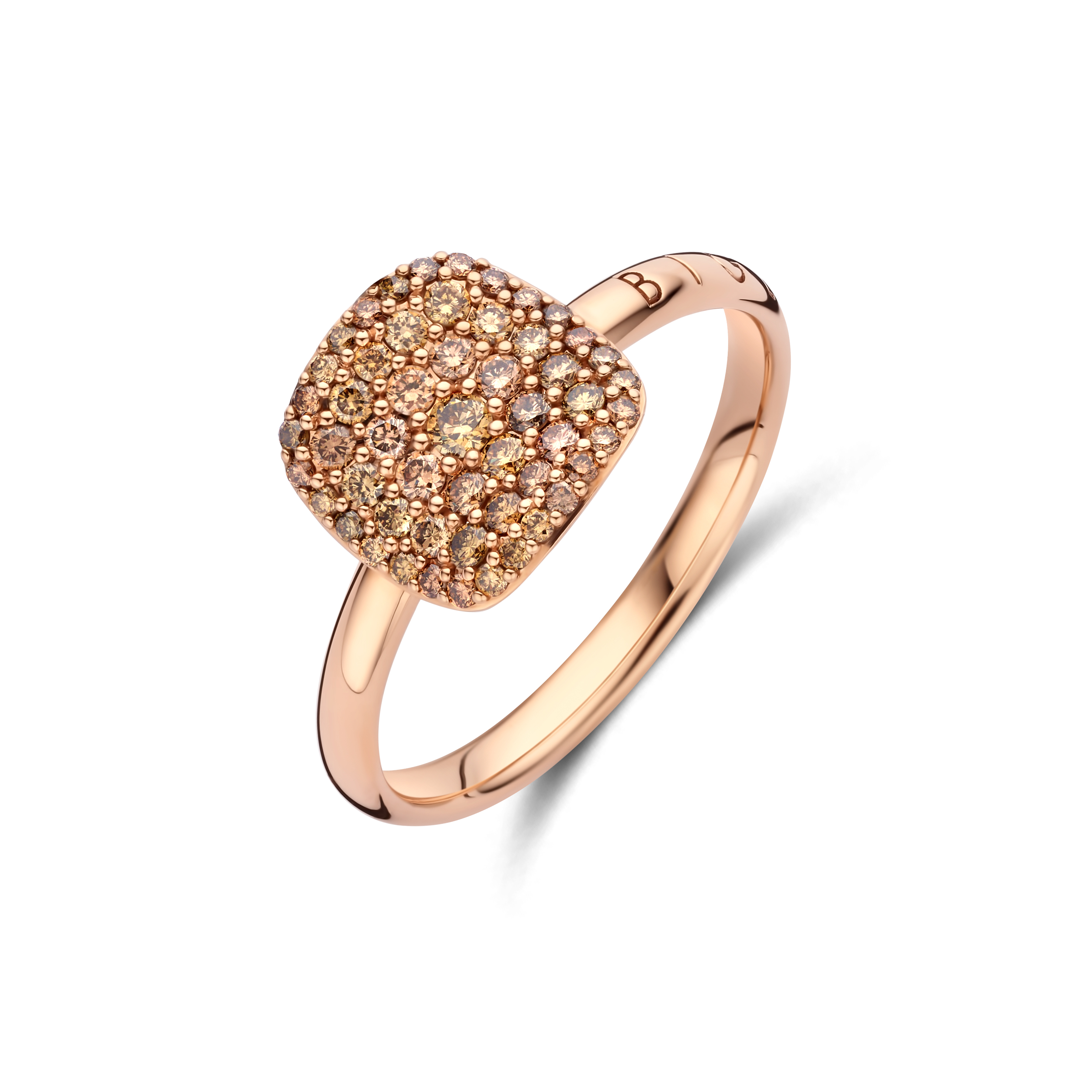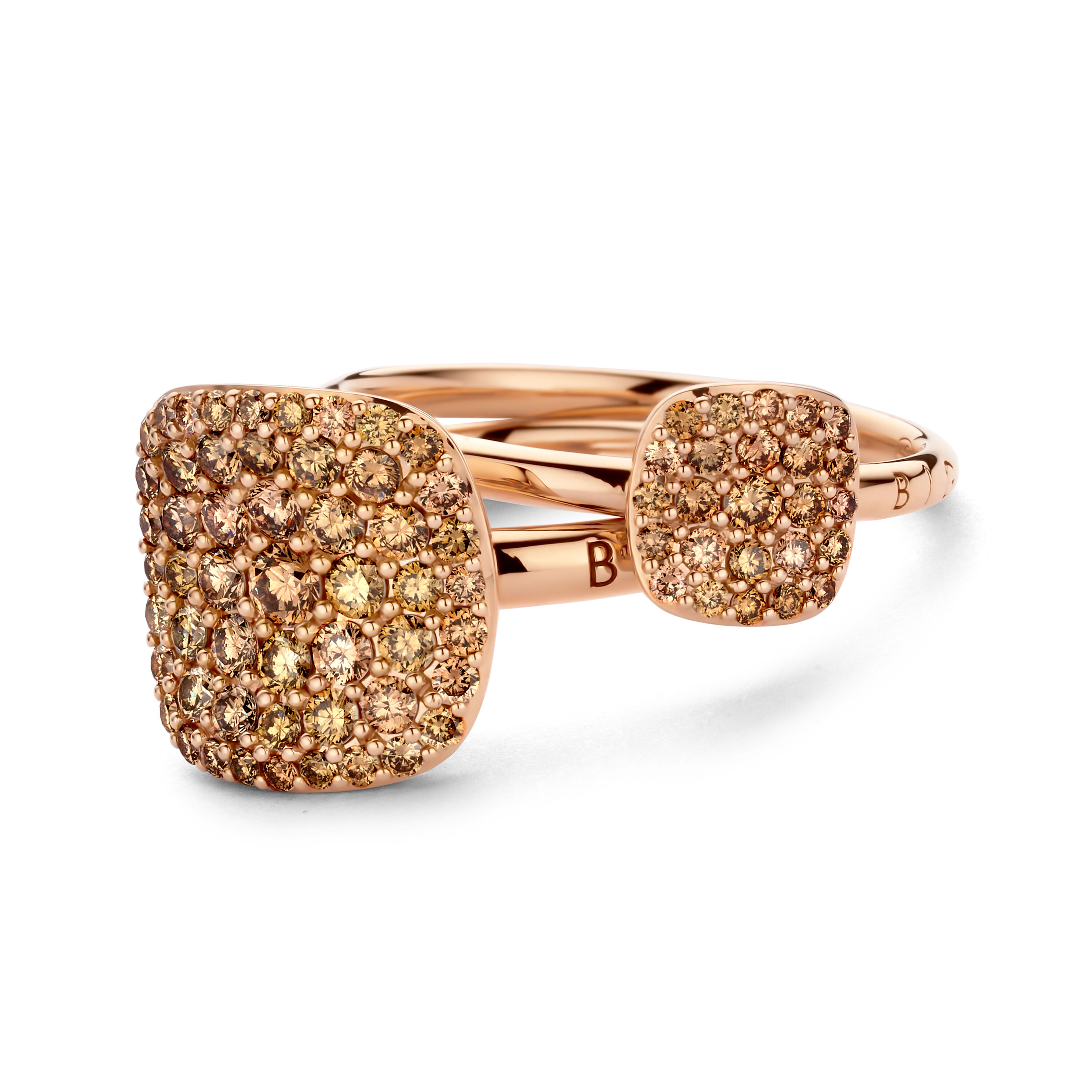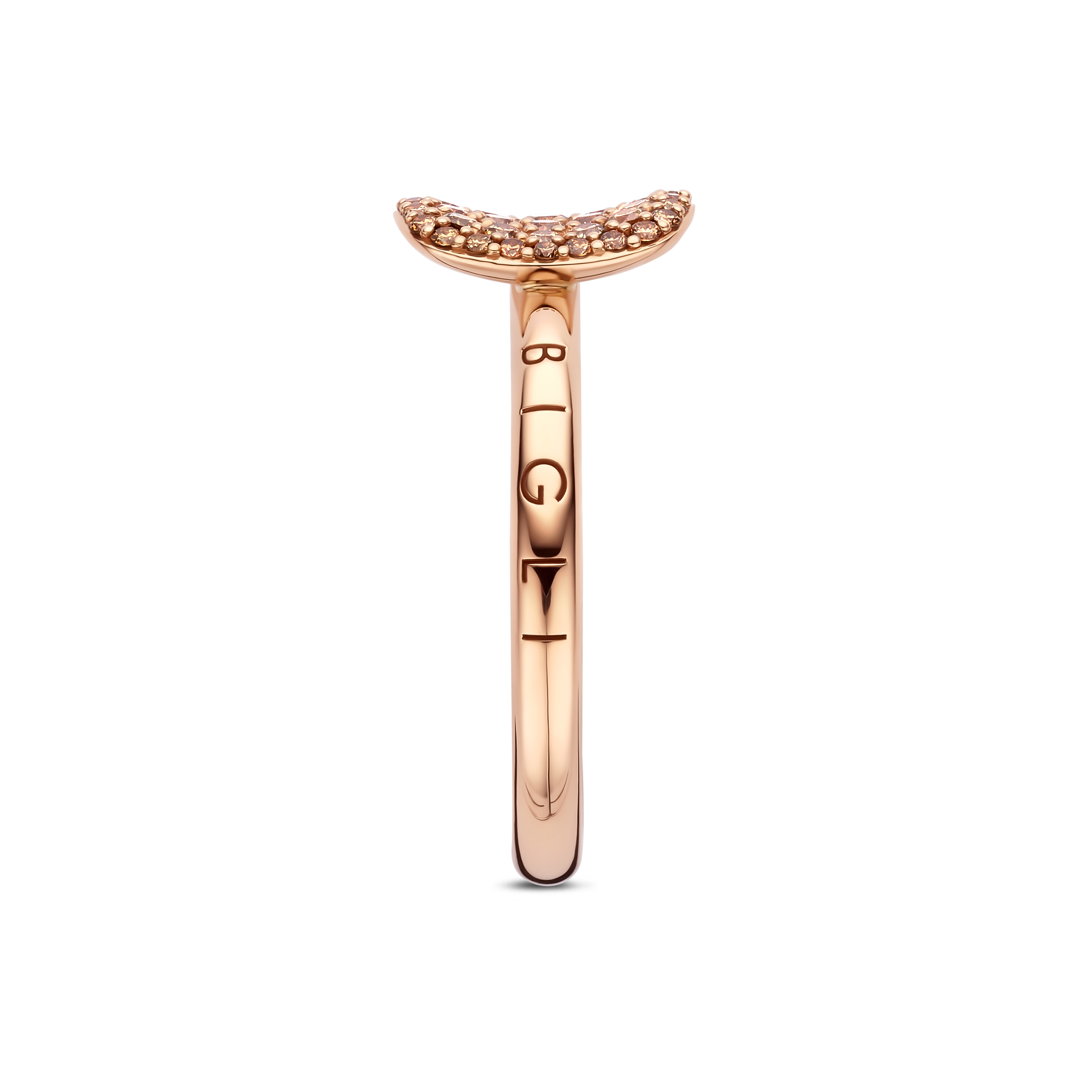De Ring Victor uit de Bigli-collectie, met referentie 23R222Rbrdia, is een verfijnd en eigentijds sieraad vervaardigd uit luxueus roségoud. Deze ring kenmerkt zich door zijn elegante, afgeronde vormen en de subtiele pavézetting van bruine diamanten met een totaalgewicht van 0.45ct. De warme schittering van de bruine diamanten in combinatie met het roségoud creëert een unieke, zachte gloed die zowel modern als tijdloos oogt.