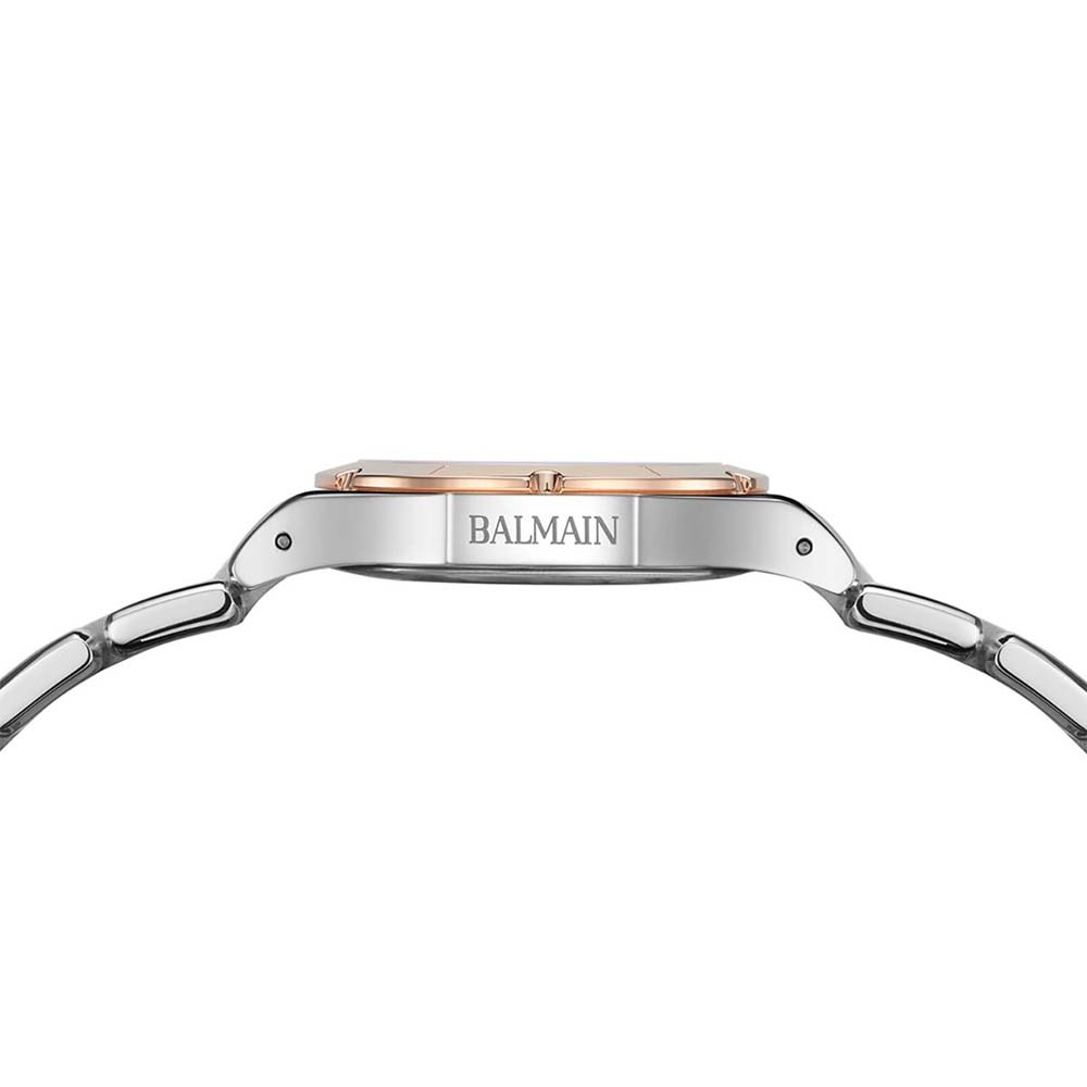 Dit stijlvolle Be Balmain dameshorloge heeft een roestvrijstalen kast met een diameter van 31 mm en een elegante tweekleurige metalen band. De zilverkleurige wijzerplaat is uitgerust met een handige datumaanduiding en beschermd door krasbestendig saffierglas, wat zorgt voor een luxueuze en functionele afwerking.